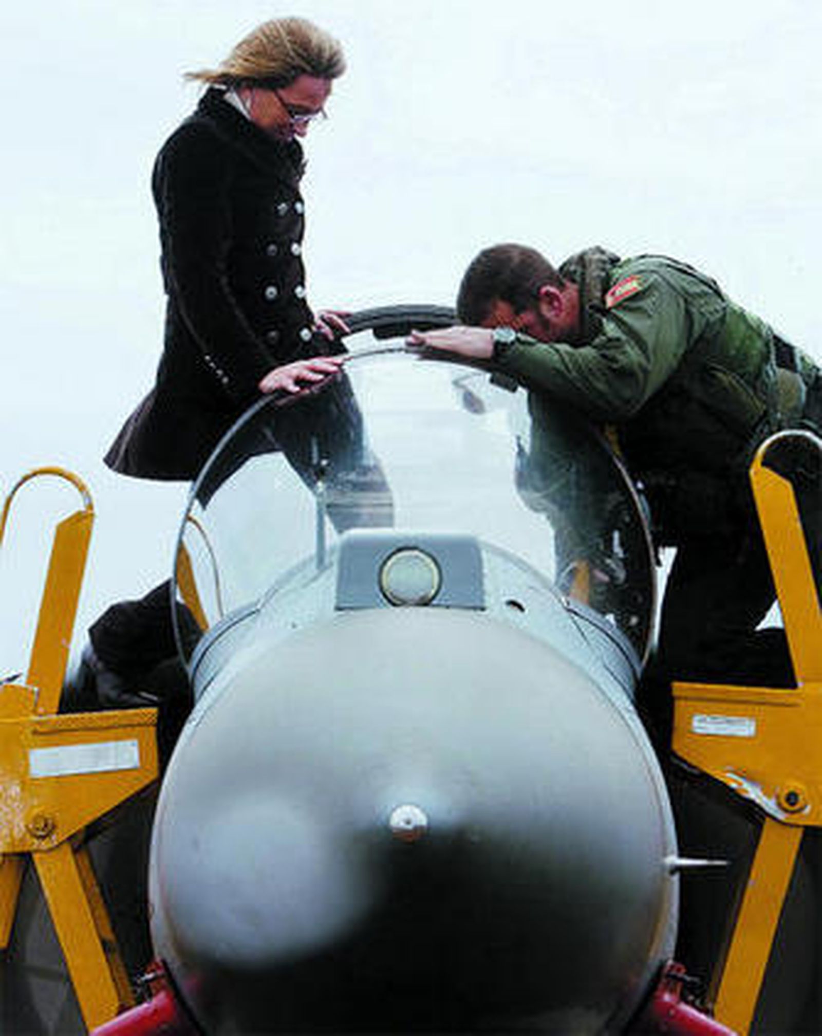 Chacón llegó al portaaviones a las 11:00 horas para presenciar esa demostración aérea correspondiente a un período de adiestramiento de pilotos de aviones y helicópteros que comenzó el lunes y concluye hoy. Acompañada del Almirante Jefe del Estado Mayor de la Armada (Ajema), Manuel Rebollo, la ministra comprobó las características de la exhibición, denominada en términos militares Calpil. La lluvia que se registró en la zona motivó ciertos inconvenientes en las pruebas.