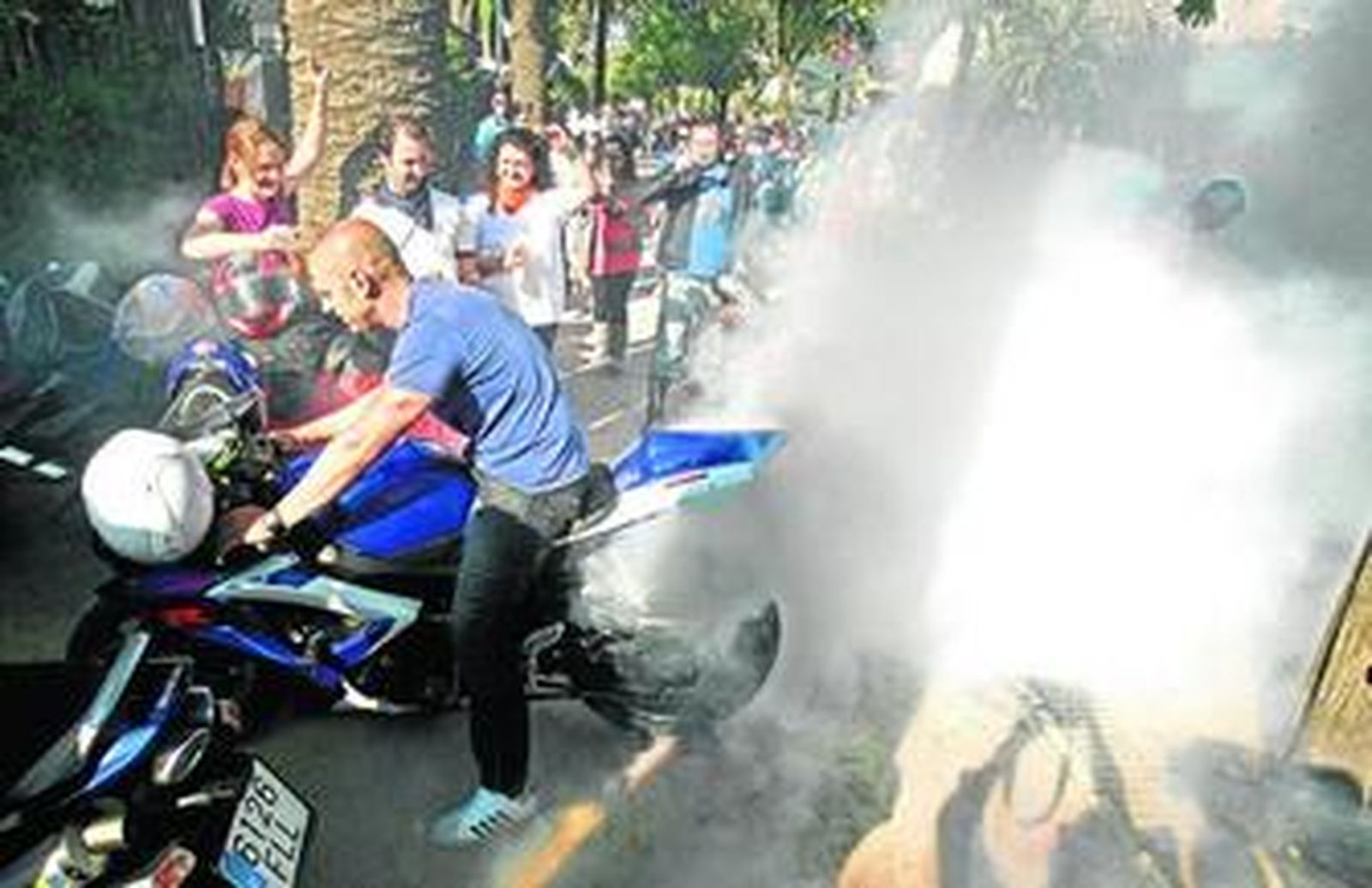 Por si acaso los policías locales estaban pendientes de sancionar las infracciones más graves e incluso la quema de ruedas, indicaron algunos moteros, pero la falta de vehículos que sufre el 092 hace que se estén empleando coches de otros departamentos municipales o vehículos camuflados notablemente obsoletos para patrullar, indicaron varios agentes.