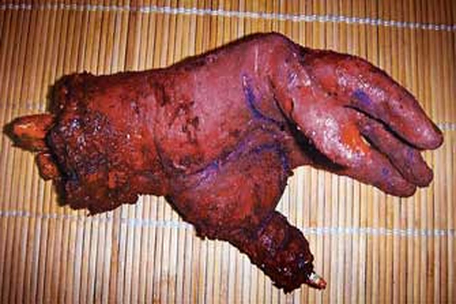 La mano que el sábado movilizó a buena parte de las fuerzas de seguridad de guardia, a la policía de Sevilla y a todos los curiosos que rondaban por el puerto deportivo era, por tanto, una mano de mentira compuesta por carne de cerdo, huesos de animales y un exterior de látex. A cualquiera que se le cuente diría que cómo puede ser eso, que cómo se puede producir semejante error de bulto. Un experto reta a 'ese' cualquiera que le apetezca soltar una chufla. "¿Has visto alguna vez un cuerpo ahogado, un cuerpo sumergido mucho tiempo en el agua como, por ejemplo, los cuerpos de inmigrantes que aparecieron en la playa de Vistahermosa en 2003? Te aseguro que es lo más parecido a un muñeco de plástico".