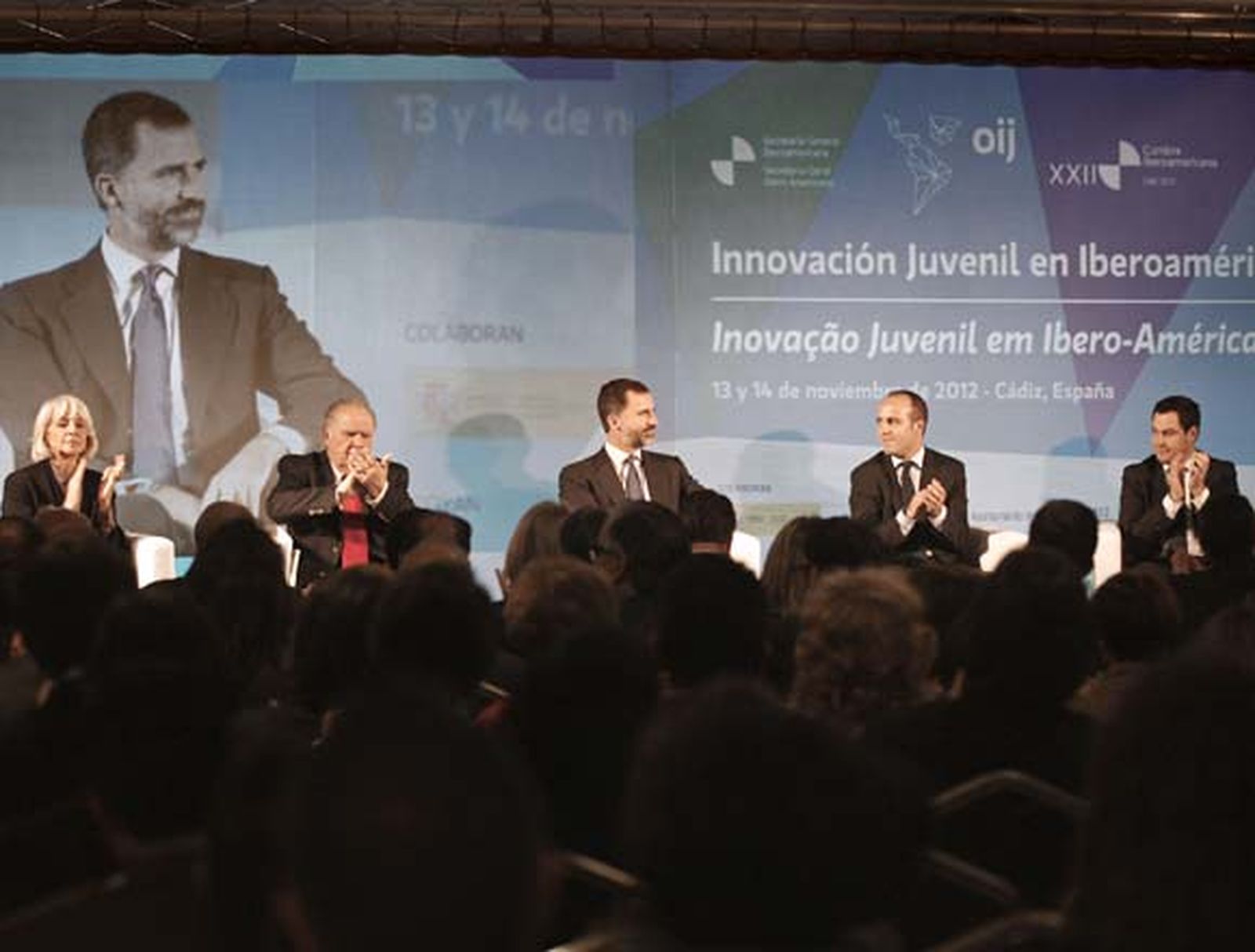 Junto a Don Felipe intervinieron el secretario de Estado de Servicios Sociales e Igualdad, José Manuel Moreno; el secretario general iberoamericano, Enrique Iglesias; el secretario general de la OIJ (Organización Iberoamericana de Juventud), Alejo Ramírez, una de las instituciones organizadoras del Encuentro; y la alcaldesa de Cádiz, Teófila Martínez. Moreno señaló a los jóvenes como "dinamizadores de ideas y, por tanto, de futuro", añadiendo que uno de los objetivos del Gobierno español es "Aprovechar la ingente capacidad de innovación los jóvenes a través de las nuevas tecnologías". Por su parte, Iglesias alertó de los "dos miedos" de la juventud iberoamericana: "El miedo a sobrar por el grave problema del desempleo y el miedo a morir entre tanta violencia".