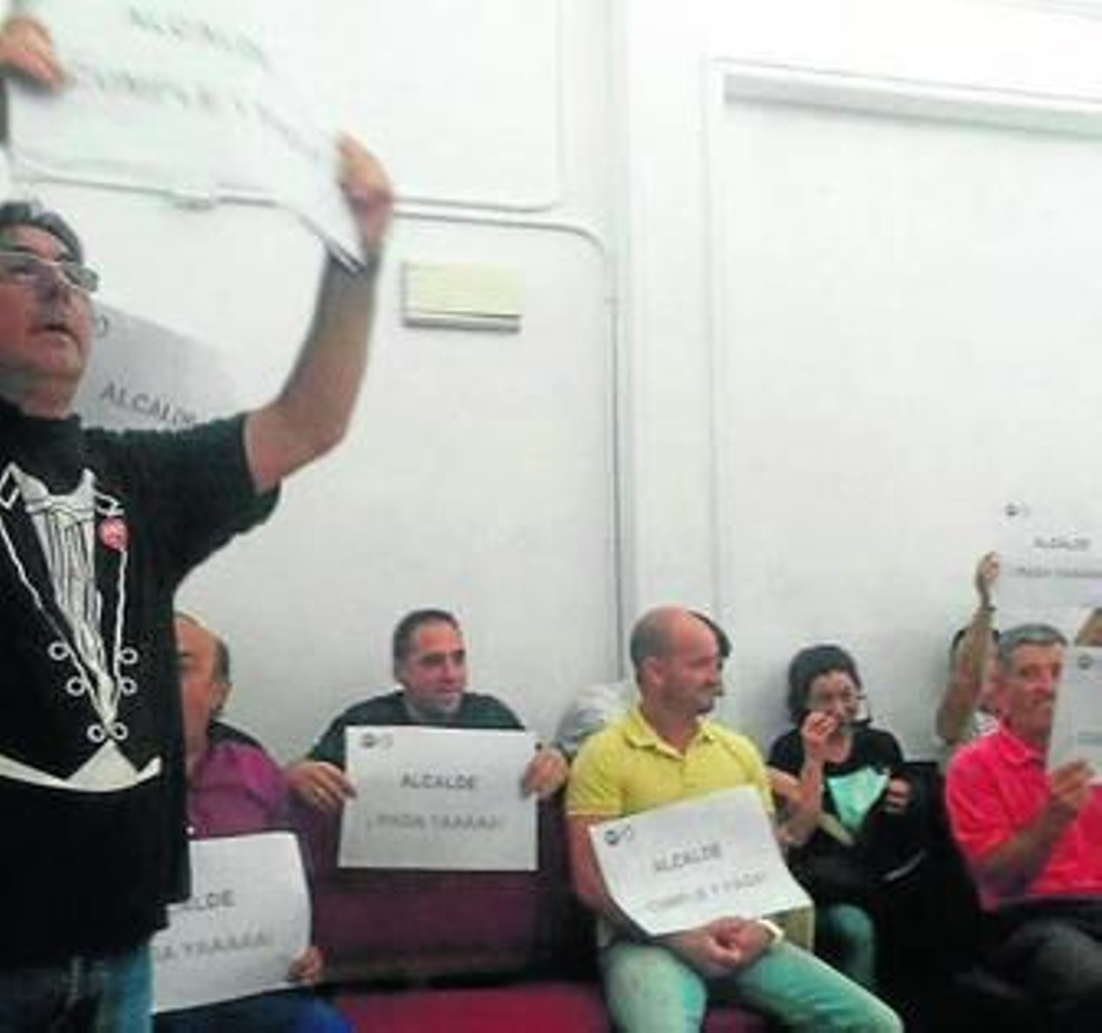 La sesión, convocada para las 8:30 horas se vio interrumpida con gritos de "alcalde, paga ya", un mensaje que también portaban una veintena de trabajadores del Consistorio en sus manos, junto a otros en los que se podía leer "Alcalde, cumple y paga". El griterío hizo que el alcalde, el socialista Rafael Quirós, determinase la suspensión de la sesión sin nueva fecha.