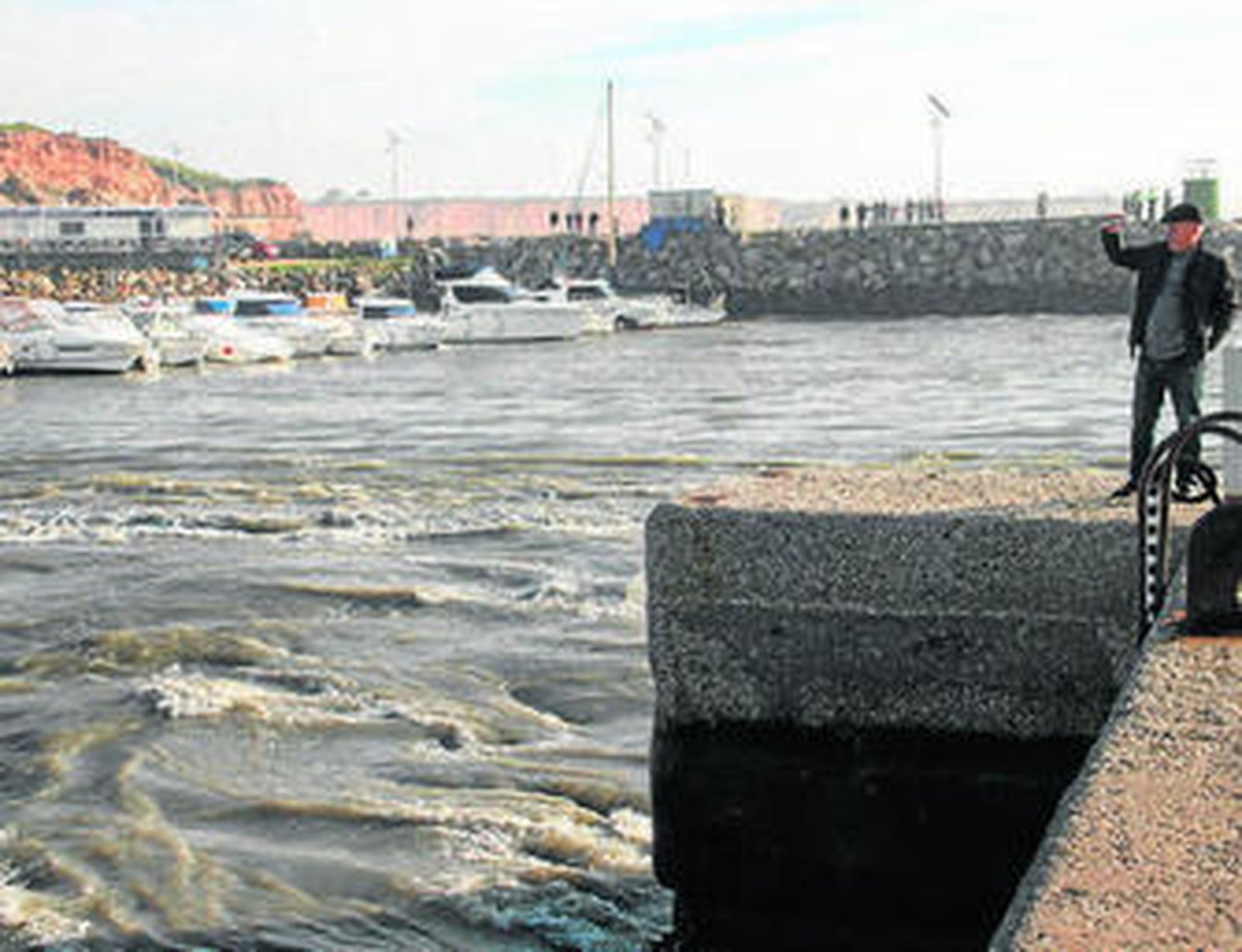 Subidos en las embarcaciones, estos profesionales del mar lograron unir cuatro de ellas, pero el oleaje era tan fuerte que se rompieron las amarras quedando a merced de las olas los cuatro barcos que, a la deriva, fueron empujados por las corrientes hacia mar abierto. La pericia de estas personas y la ayuda complementaria de otro barco permitió lanzarles unos cabos para hacerlos entrar de nuevo a puerto, un propósito que lograron empujados por las mismas corrientes de agua que momentos antes les habían llevado mar adentro.