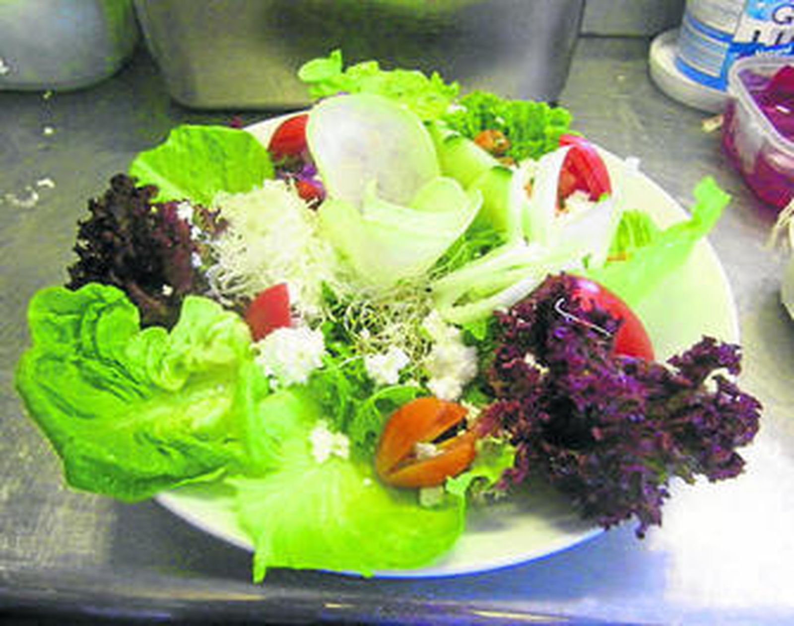 Para tomar antes de la carne sirven algunos aperitivos como un carpaccio de solomillo de retinto, que cortan cuando lo pide el cliente, o rosbif, una manera inglesa de preparar la carne que consiste en servirla asada y cortada en finas lonchas. También cuentan con revueltos, pero la gran estrella, la que no falta en casi ninguna de las mesas, es la espectacular ensalada de la casa, un plato de dimensiones descomunales en el que vienen hasta una decena de verduras diferentes: varios tipos de lechugas y hojas verdes, varios tipos de col, zanahorias, remolacha... La composición varía en función de la temporada o de lo que hayan traído del campo. El plato se complementa con un poco de queso fresco de cabra muy picado y la vinagreta, otra de las joyas del establecimiento, una mezcla de aceite con miel de Conil, vinagre y zumo de naranja y limón.