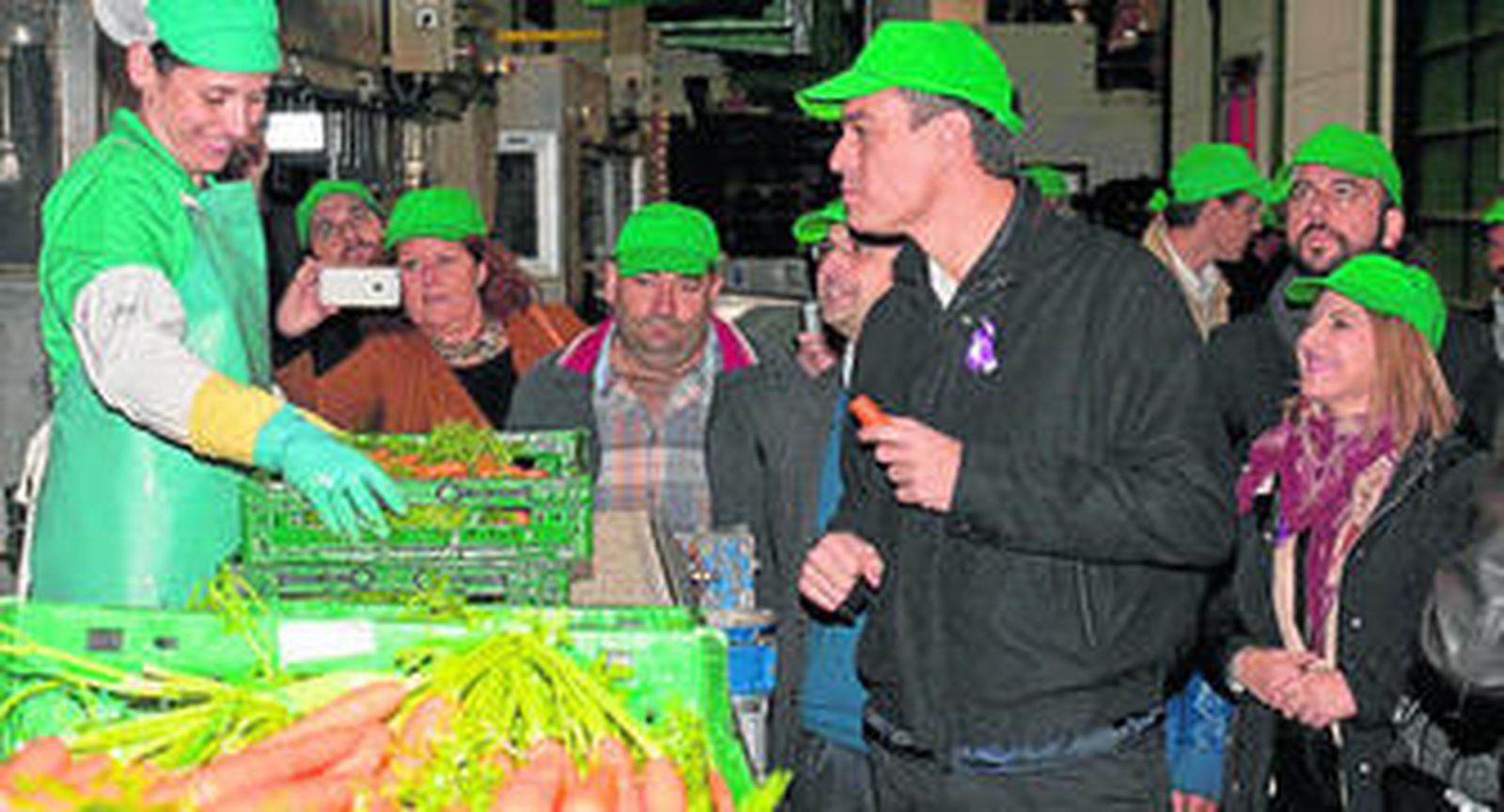 Antes de acudir al acto en Jerez, el secretario general del PSOE y candidato socialista a la Presidencia de Gobierno, Pedro Sánchez, visitó ayer Sanlúcar, donde se detuvo para conocer una de las cooperativas hortofrutícolas más importantes de la localidad, Frusana.
