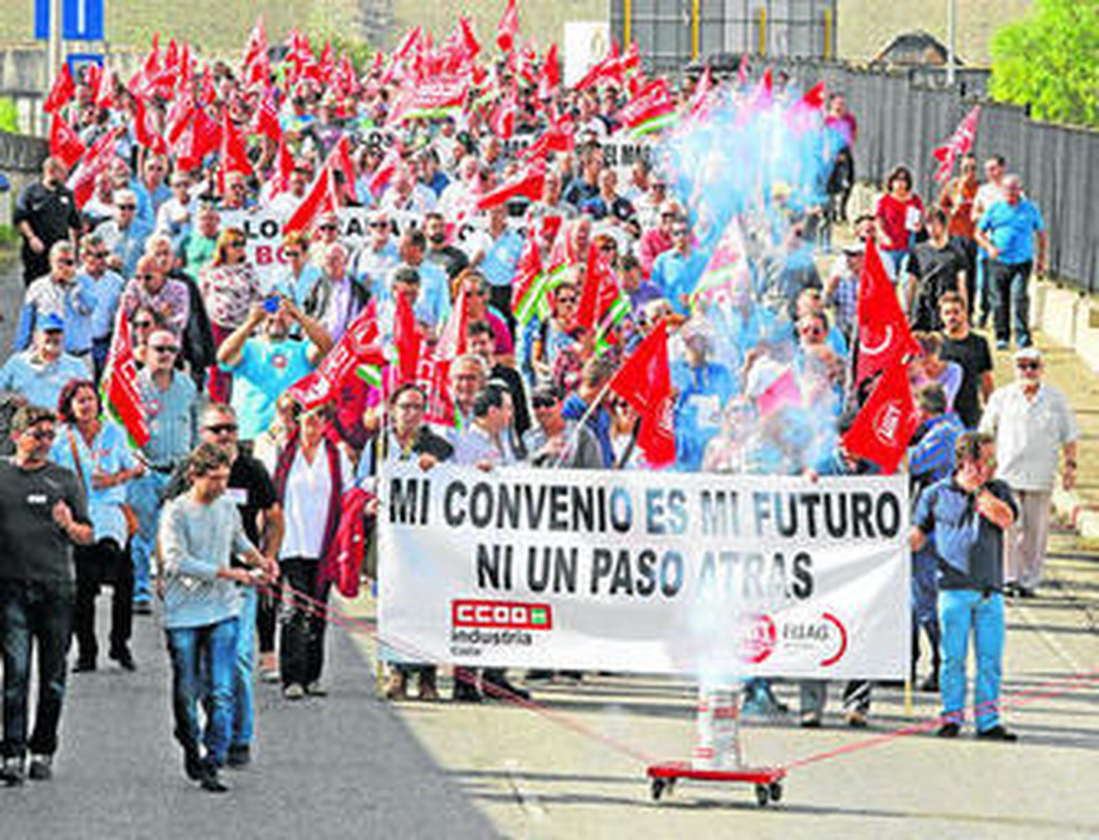 La manifestación de ayer, como la huelga en sí, pretende ser una demostración de fuerza de los sindicatos, que al igual que la patronal Fedejerez, lanza un mensaje de firmeza en su posición en las negociaciones, que enlaza con el lema "Mi convenio es mi futuro. Ni un paso atrás", inscripción que luce en la pancarta de cabecera de la manifestación.