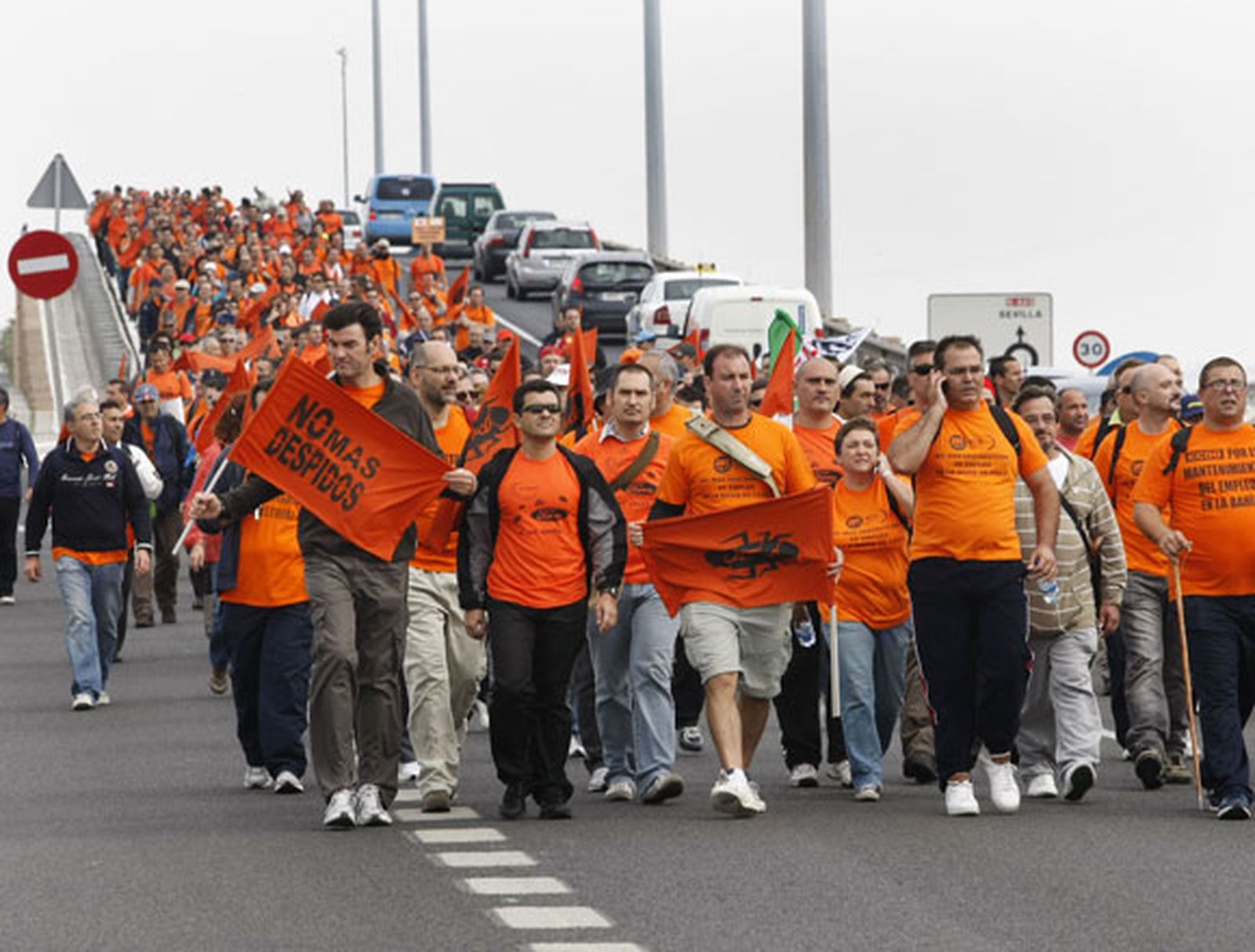 Las seis horas de marcha de la «marea naranja», que ha circulado por tramos de autovía y ha entrado en Cádiz por el puente Carranza, han transcurrido sin incidentes, salvo las molestias para los conductores que se han encontrado con los cortes a la circulación establecidos por la subdelegación del Gobierno en Cádiz para facilitar el paso de la protesta.