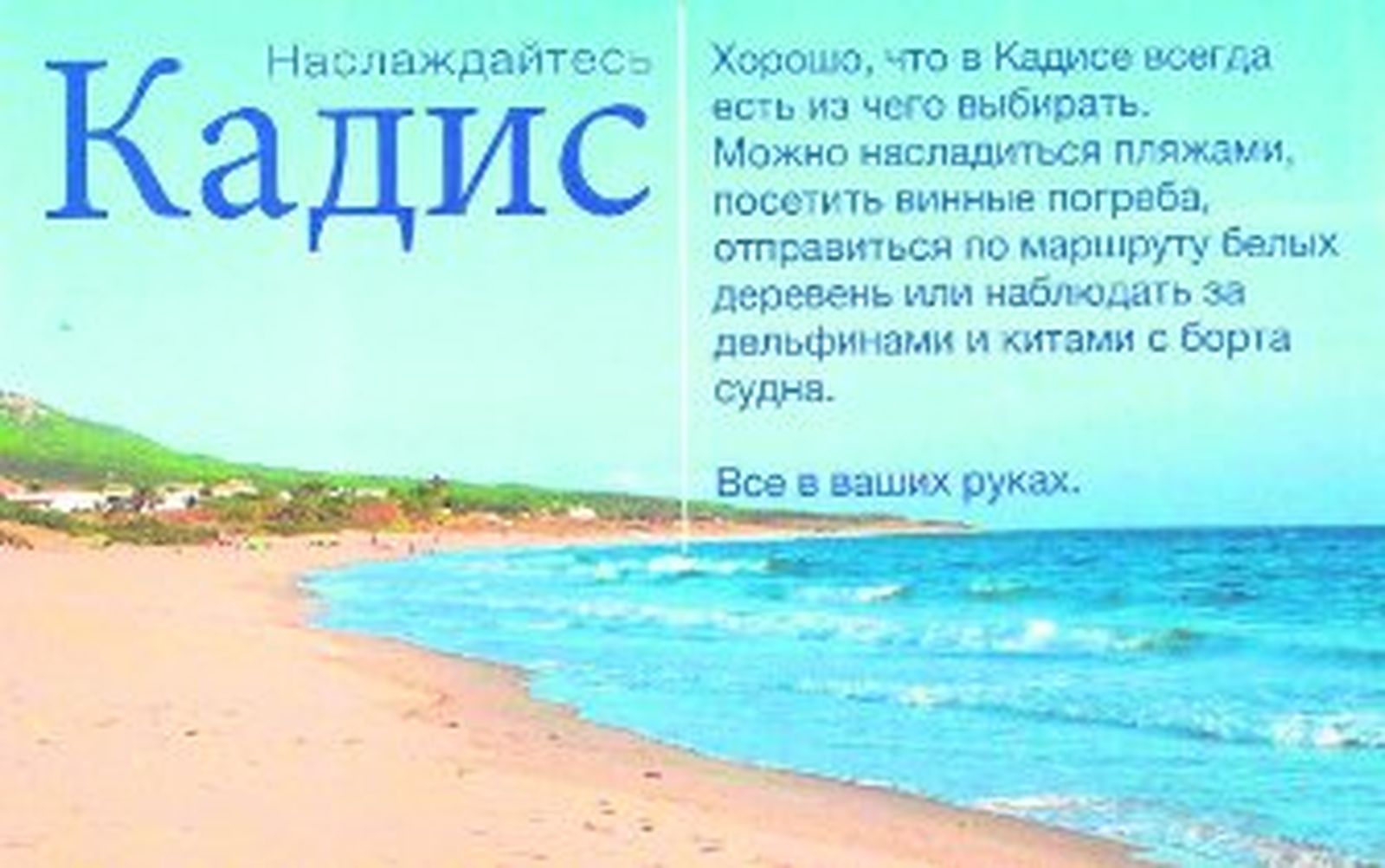 Cádiz ha registrado en lo que va de año un incremento de un 17% de turistas procedentes de Rusia. Por eso a principios del mes pasado, más de cincuenta delegados de agencias rusas, responsables de la comercialización de los destinos turísticos ante un mercado en expansión, atendieron en San Petersburgo una exposición sobre la oferta de la provincia de Cádiz. Las excelencias de un territorio que busca su hueco fueron divulgadas en un videoclip y en una revista traducidos al ruso.