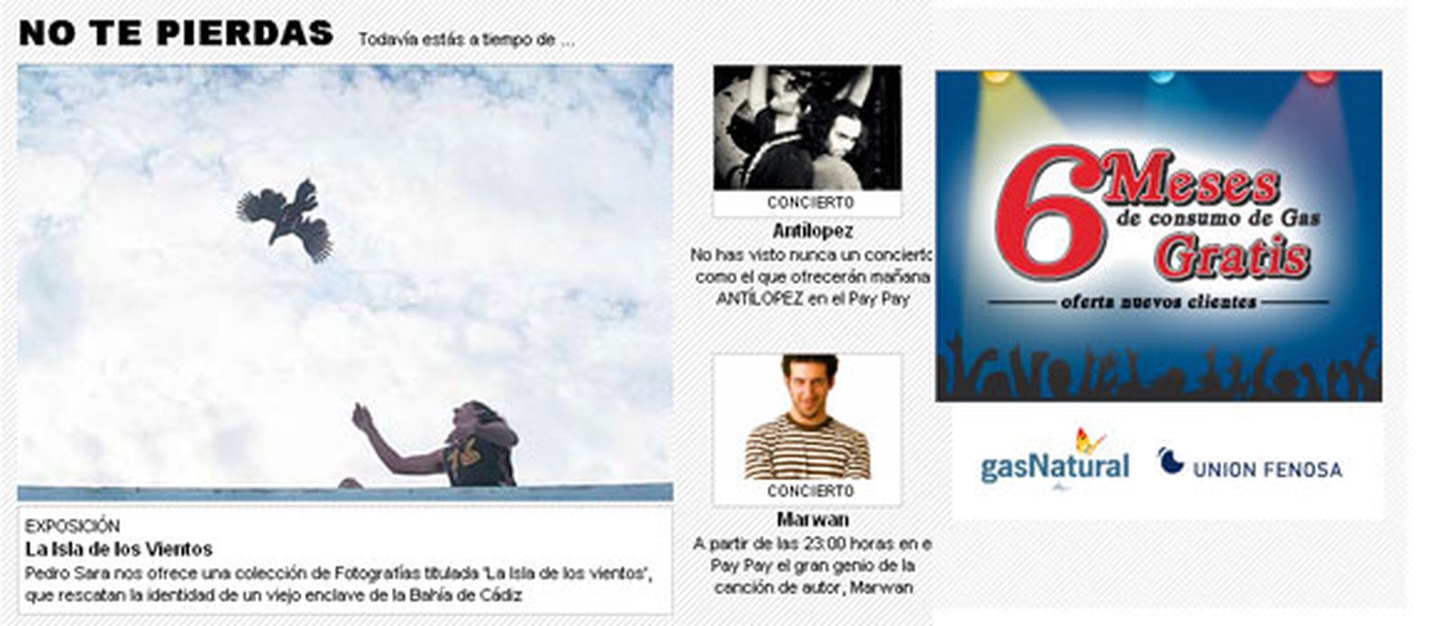Además, en el espacio NO TE PIERDAS, le recordamos aquellas exposiciones, proyecciones o representaciones que no debe dejar pasar de largo.