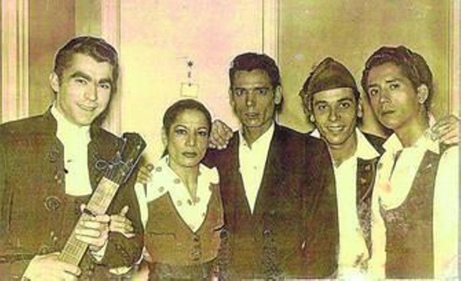 Juan Doblones con la guitarra, Carmen Amaya, Chocolate, bailarín de Jotas y Agustín Gómez.