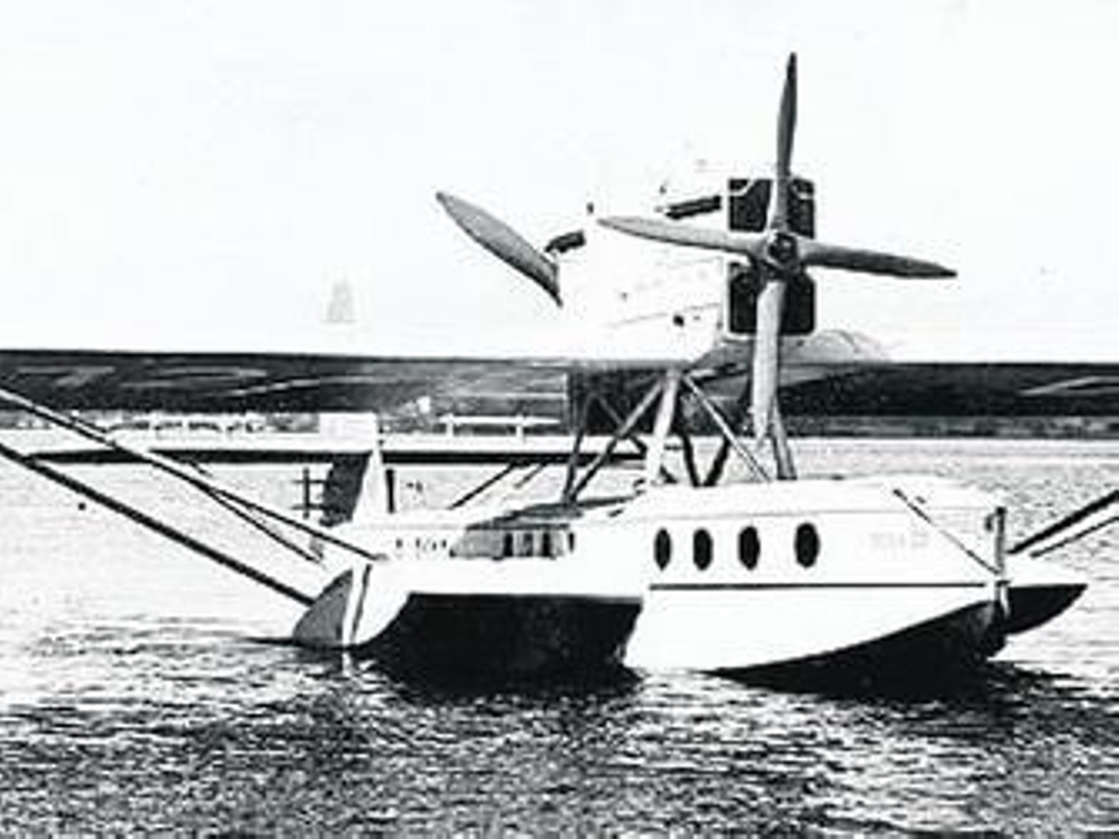 El aparato estaba frente a la factoría de Puntales y tras elevarse suavemente voló sobre varias localidades de la provincia y finalmente sobre la capital. Después volvió a amerizar en las tranquilas aguas de la Bahía. Desde el hidroavión se tiraron numerosas placas de los pueblos de la provincia.