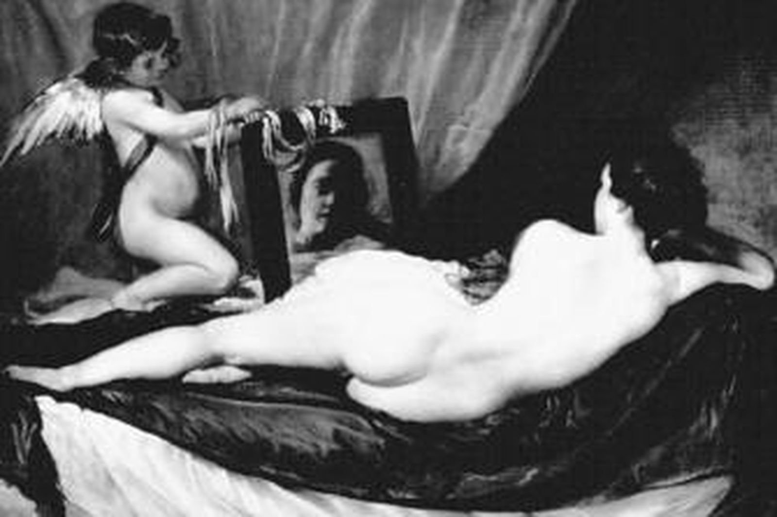 Si a todo ello unimos la posibilidad de que el lienzo fuera pintado en Italia, y las especulaciones sobre la identidad de la modelo, novela dentro de la novela, tenemos los ingredientes necesarios, para hacer, como Velázquez gustaba, de un cuadro un misterio. ¿Quién es, en verdad, o que quiere representar esta clara y plácida Venus cuyo rostro reflejado en el espejo es borroso, vulgar y zafioý? "¿Soy -dice- un engaño?". Sea como fuere, esta Venus de múltiples y señalados precedentes iconográficos: Giorgione, Tiziano, Rubensý de cuerpo nacarado y adolescente, prodigio de sensualidad y elegancia, ofrece ocasión al pintor para dar la vuelta al sentido del mito, tal como hiciera con el sedente Marte (h. 1641), que nada tiene de ímpetu guerrero y mucho de pensativo desencanto. Las Venus de Tiziano o Rubens exaltan la vida y el placer que ofrecen los bellos cuerpos con rotundidad y sin ambages. La fatal dicotomía que establece Velázquez entre el rostro especular y el grácil cuerpo, parece avisar, no sin cierto pesimismo, de una cierta mentira anidada en lo más bello.