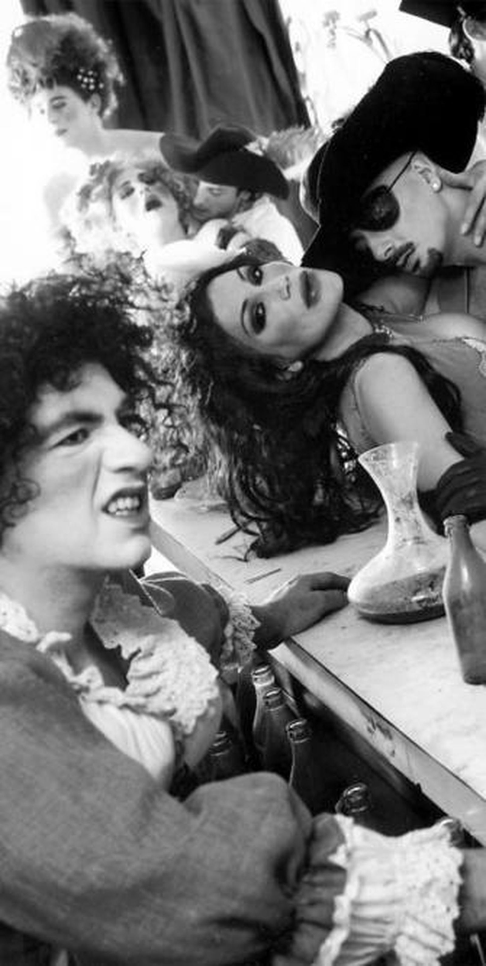 "La textura de los tapices proviene de Holanda, ya que para imprimir las fotografías y no se perdiesen los colores en la tela, tuvimos que conseguir estas piezas y n las había en España", comenta Lorenzo Caprile. A la teatralidad de cada imagen, los bordados les añaden unas gotas de realismo que inquieta al primer golpe de ojo a base de encajes, lentejuelas y pedrerías. Materiales que han sido aportados por otro colaborador de la muestra, Hugo di Perla. Una exposición que, según Pasquale Caprile, "podría ser itinerante y deambular por España e incluso por el extranjero. Aunque las metas pueden ser mucho más altas, ya que la idea podría aspirar a la representación teatral de la muestra, con el vestuario y el atrezzo utilizado para las propias fotografías".
