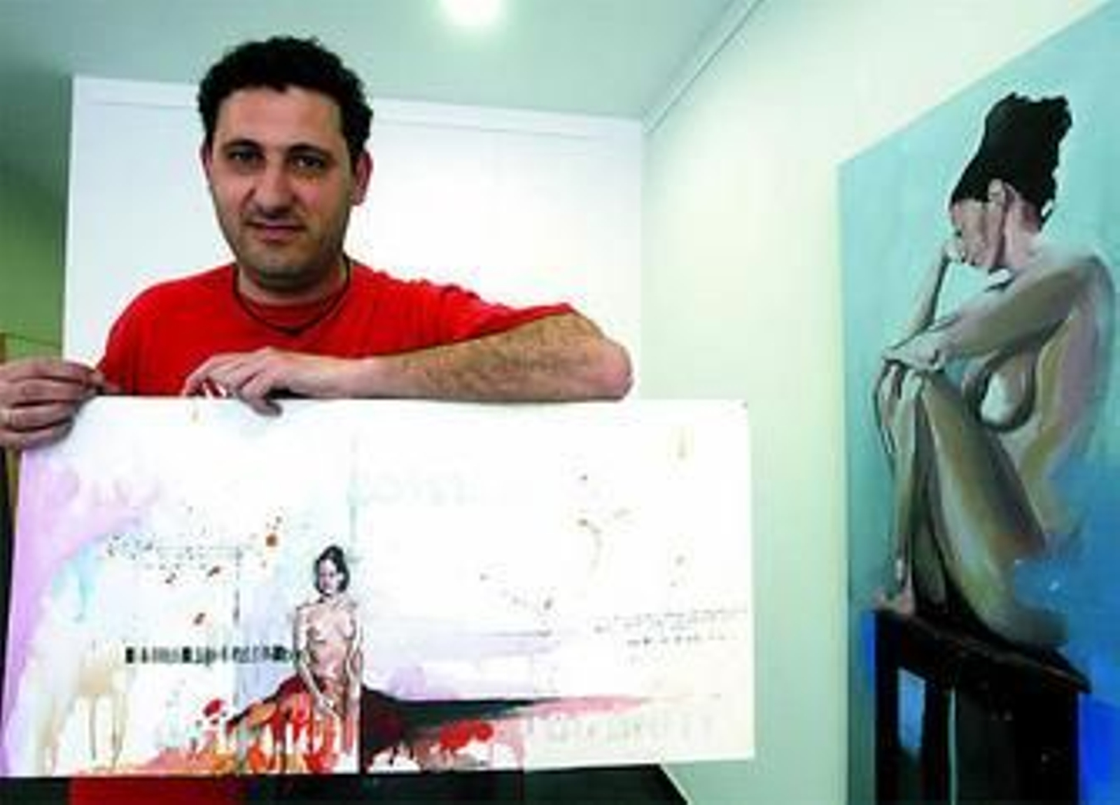 Los trazos más íntimos de Julián Delgado se dejaron ver ayer. La galería Rafael Gordon abrió al público su serie Miradas al desnudo, donde el formato clásico por excelencia se funde con elementos de carácter contemporáneo, sembrando ante el espectador un panorama "de equilibrio". Al menos es ésta la intención del artista gaditano: "El desnudo ha sido uno de los grandes referentes en la historia del arte, es el ideal de la belleza y es lo que perseguimos todos. Y para alcanzar este equilibrio con la actualidad introduzco en mi obra el código de barra y el código binario". De hecho, ambos elementos compositivos se han convertido en todo un referente en la obra de Delgado. El código de barras, como excusa para contar al mundo "que todo está normalizado, automatizado y controlado", mientras que el código binario surge a raíz del descubrimiento de los números "que siempre dicen algo, sólo hay que traducirlos".