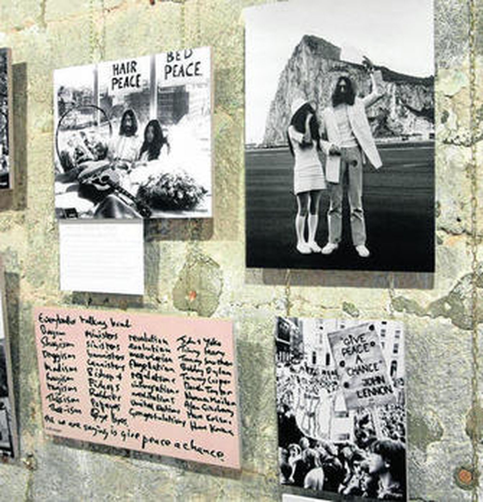 La relación de Lennon con Gibraltar fue muy estrecha, prueba de ello la boda que contrajo en el Peñón un 20 de marzo de 1969 junto a Yoko Ono y para el recuerdo queda la foto que ambos se hicieron vestidos de blanco portando el certificado de matrimonio. Esta imagen como otras de carácter mucho más personal se encuentran completando una exposición de alrededor de 200 objetos sobre la vida íntima y familiar del cantante de The Beatles, así como los recuerdos que posee Julian del grupo de su padre, que integraba junto a Paul McCartney, George Harrison y Ringo Starr.