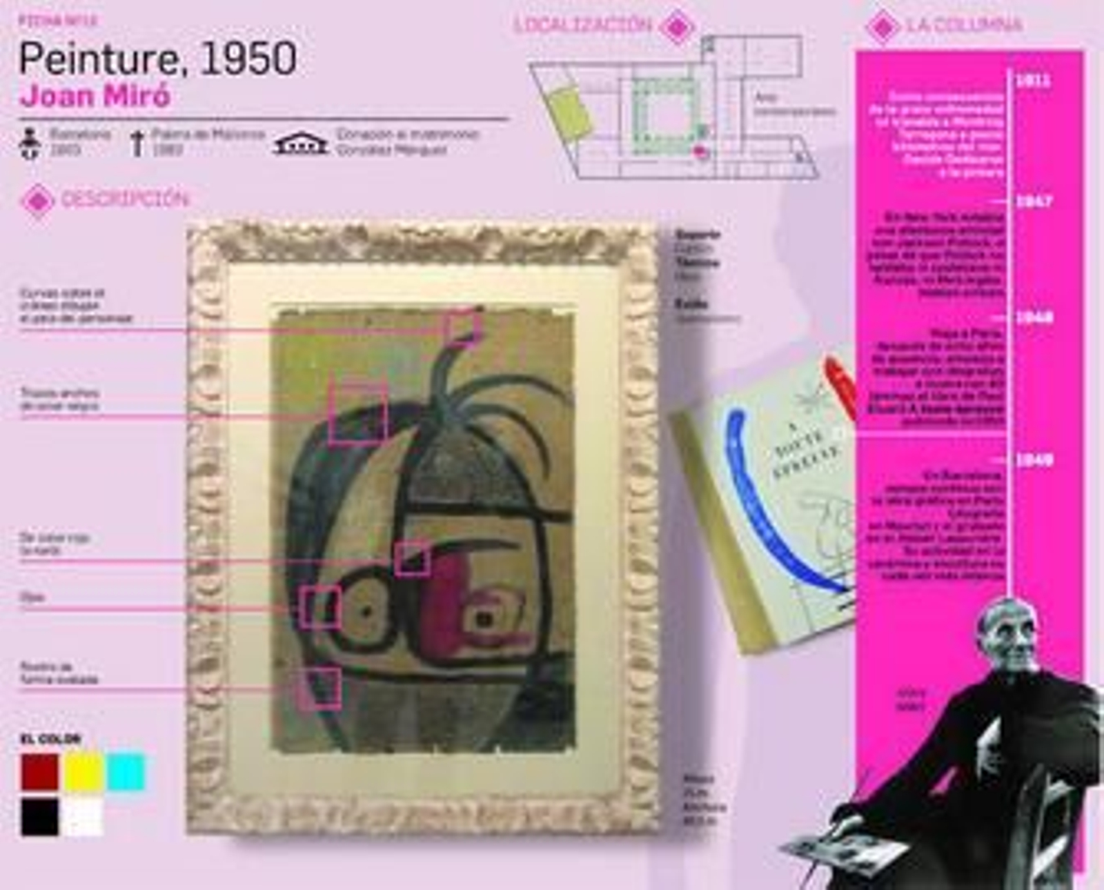 Se trata de una pieza muy significativa por lo que representa en sí misma y por el momento crucial en que fue concebida por Miró allá por el año 1950. "Peinture ejemplifica a los pintores españoles que participaron desde París en el desarrollo de las vanguardias durante las primeras décadas del siglo, como Picasso y Dalí", explica el director del Museo de Cádiz, Juan Alonso de la Sierra.