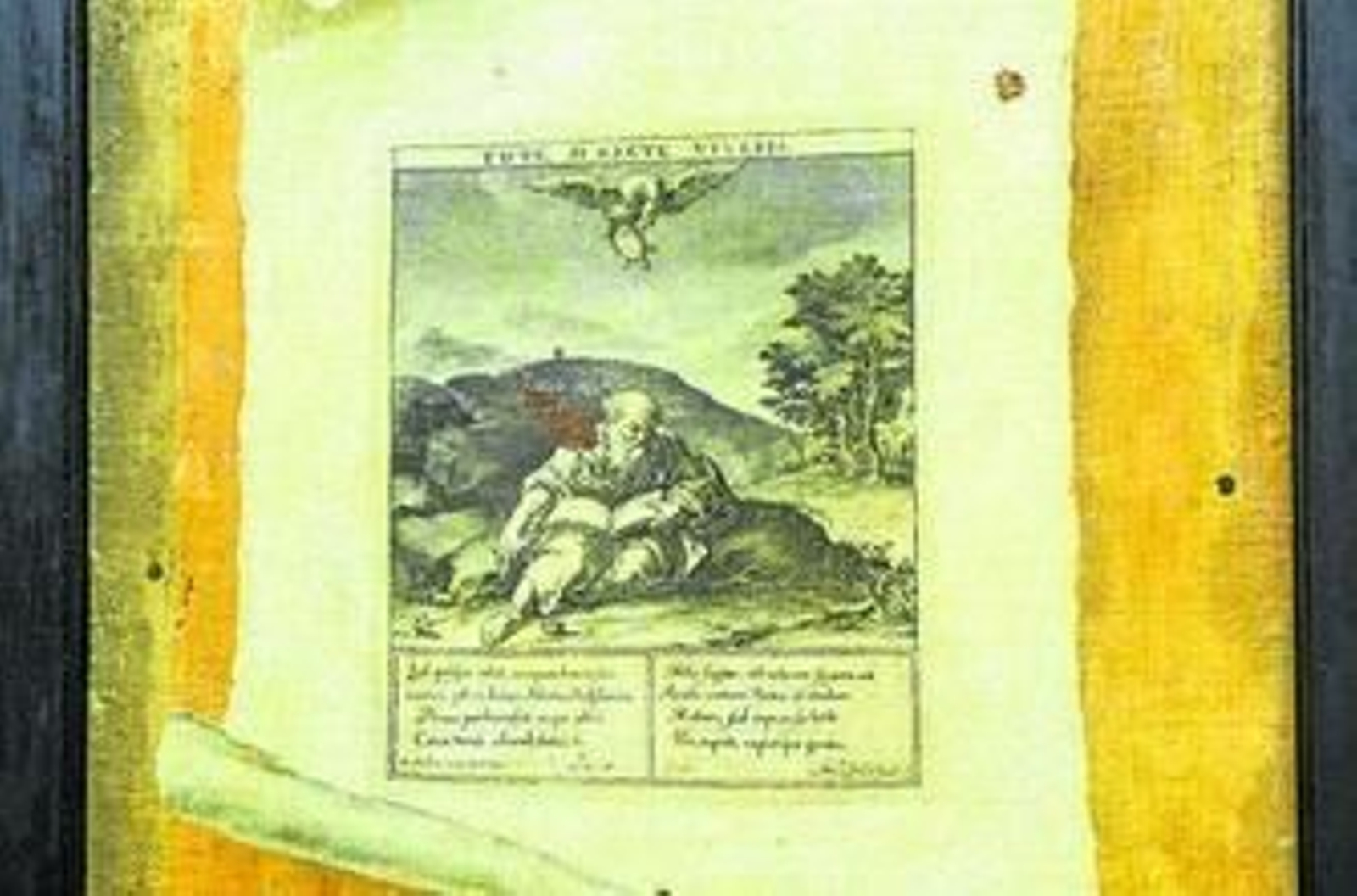 En el caso de la obra presentada ayer en el Museo, Francisco Gallardo sitúa un grabado o estampa clásica como si estuviera clavado en una madera, con sus bordes doblados para dar sensación de separación de la madera y hasta con una mosca en la base del papel. Y en esa madera, el autor clava un dibujo del pintor flamenco Otto Vaenius, maestro de Rubens, donde se representa al dramaturgo griego Esquilo.