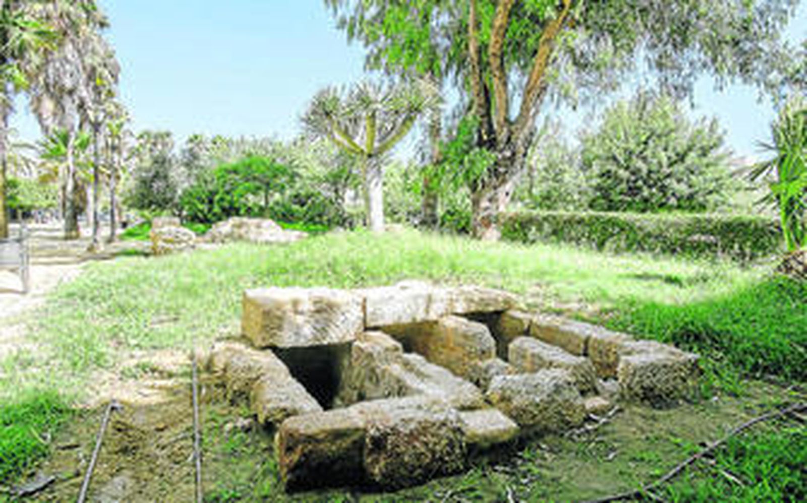 Ahora acaban de incluirse tres nuevos enterramientos fenicio-púnicos, así como un monumento funerario del siglo I.d.C. en este recorrido histórico, aunque todavía está a la espera de que se coloquen los paneles informativos que los contextualicen, "que serán instalados próximamente", señalan desde el Ayuntamiento de Cádiz. Esta actuación no ha contemplado la puesta a punto del resto del circuito arqueológico, con algunos desperfectos a su paso, aparte de la hierba crecida en buena parte del parque, dotándole de un aspecto de abandono. Tampoco se difunde apenas el valor de este bonito paseo que nunca supo ubicarse en los circuitos turísticos de la ciudad, y que en la mañana de ayer, un día soleado de agosto, estaba acompañado de perros paseando o chapoteando en la fuente. Ni un turista fotografiando algunos de los interesantes rincones que atesoran diferentes réplicas y originales arqueológicos sobre rituales de enterramientos fenicios y romanos.