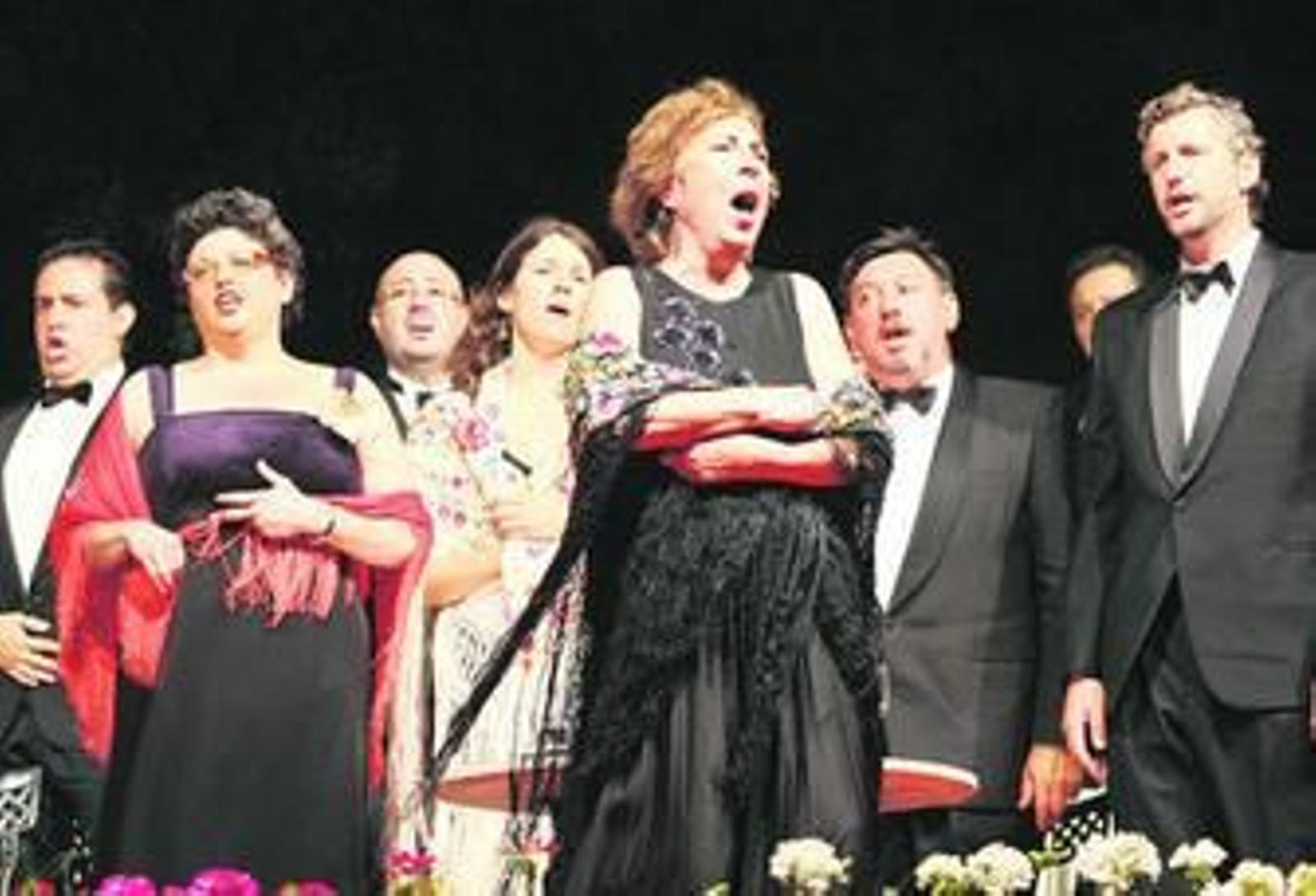 Un decorado en donde se dispusieron mesas y sillas como parte del atrezzo fue ocupado por los intérpretes que pasaron a encender la noche con la interpretación que hizo Mariano Galán de la Canción húngara dentro de la zarzuela Alma de Dios, obra ambientada en el Madrid popular de principios del siglo pasado.