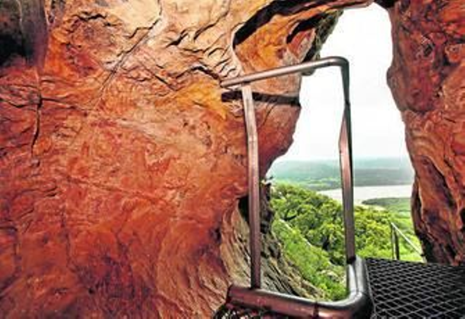 Tras recorrer unos 700 metros y tras sortear rocas de gran tamaño el visitante se planta ante la gran escalera metálica dispuesta totalmente en vertical de unos cinco metros de altura, en un primer tramo. "Antes del 94 había un palo cruzado ahí arriba y subían por una cuerda", recuerda Juan, que se adelanta para abrir la trampilla que la separa del resto de la humanidad, y deja paso al pequeño pero fascinante espacio, donde se han llegado a distinguir hasta 507 representaciones entre figuras humanas, representaciones animales en gran parte, y signos, realizadas entre el Paleolítico Superior y el Cobre o Bronce inicial. Un refugio para nuestros ancestros más creativos, que fue alcanzado en una primera expedición hace ahora 102 años, declarado Monumento Arquitectónico Artístico en 1924, declarado BIC en 1985 y distinguido en 2011 como Itinerario Cultural del Consejo de Europa.