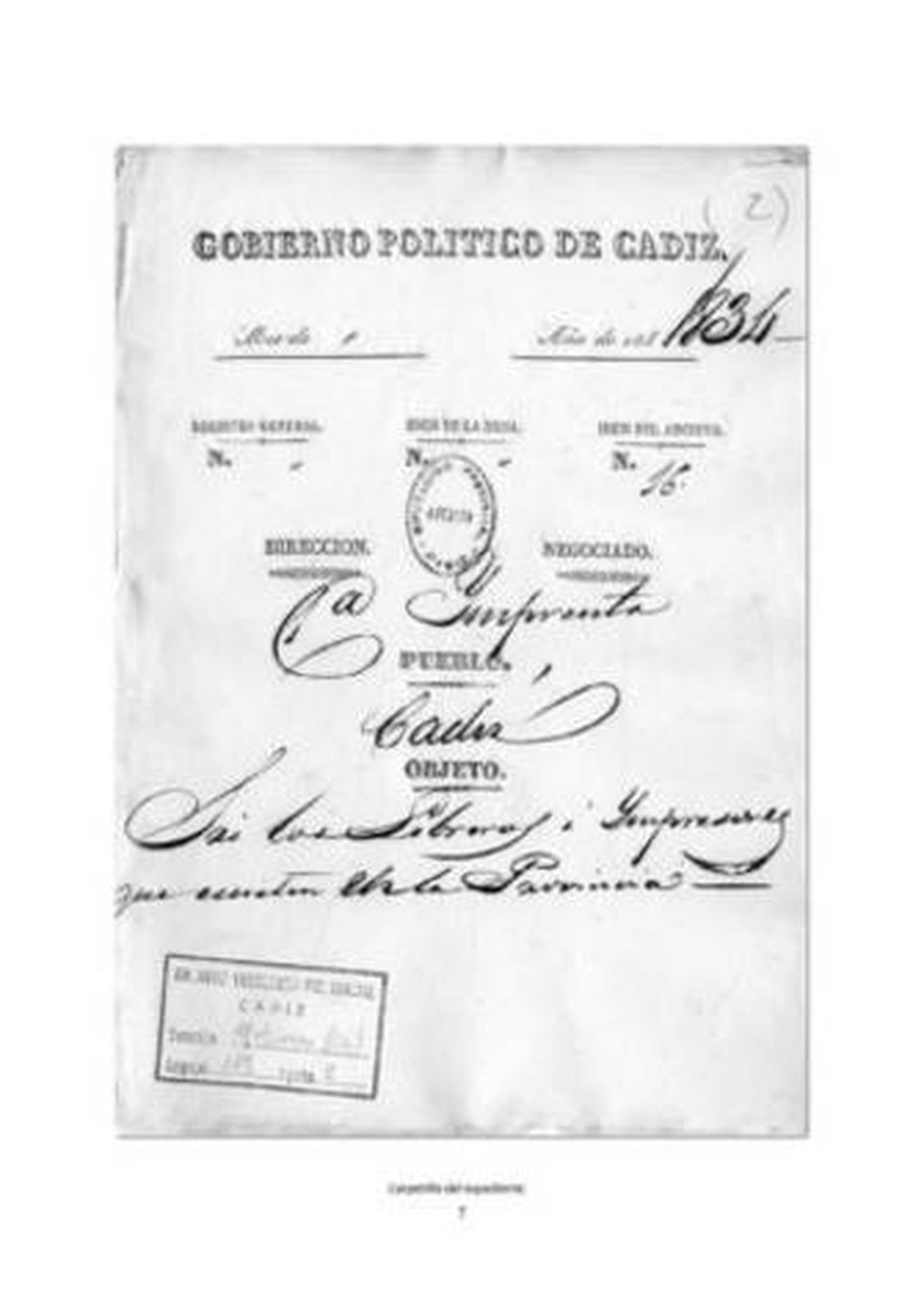 Y es que una de las principales atribuciones del Gobierno Civil en el siglo XIX es el control de las actividades de prensa e imprenta, con un férreo control sobre la actividad impresora. De hecho, la figura del gobernador civil se consolida en esta etapa pasando de llamarse jefe político, subdelegado de Fomento, a su denominación definitiva de gobernador civil. Entre sus competencias siempre estarán el orden público y velar por el cumplimiento de la normativa en materia de prensa e imprenta. En este caso, es el subdelegado de Fomento quien intenta reunir información sobre los libreros e impresores que trabajan en la provincia gaditana. Y por eso el librero jerezano envía su documentación sobre el gabinete de lectura al subdelegado de Fomento.