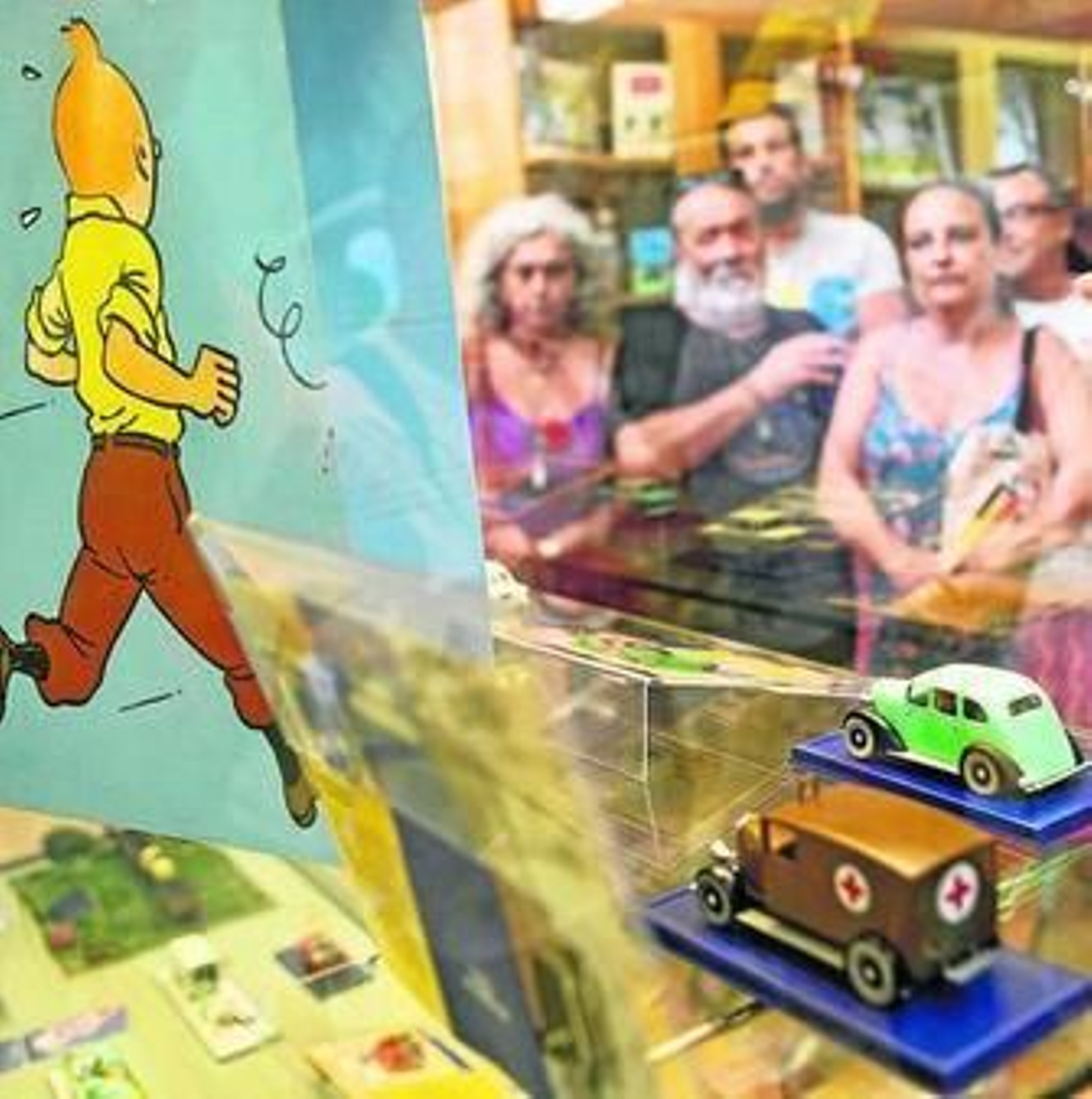 La muestra de Extramuros estaba abierta ayer a todo aquel que quisiera a unirse a un encuentro programado con el vicepresidente de la asociación tintinófila de España y con Juan D' Ors, uno de los tintinófilos más conocidos de nuestro país y al que José Paredes conoce del "círculo tintinófilo", de las reuniones que se van celebrando sobre el personaje. La cita se cerró aprovechando que D´Ors inauguraba una exposición de pintura en El Puerto. Juan D´Ors es también el actor encargado de doblar a Tintín en las recientes versiones de dibujos animados de las aventuras del personaje y autor de La línea clara, sobre el método de dibujo que creó Hergé. Precisamente, esta técnica -basada en el trazo limpio y los colores puros y con cierta influencia del efecto máscara empleado en el manga, que luego imitarían los dibujantes de la escuela franco-belga- protagonizó en gran parte la charla que mantuvieron los tres expertos y a la que acudieron varios aficionados para que el autor -que llegó a mantener correspondencia con el propio Hergé y es creador, también, de varios vídeoclips sobre las colecciones de Tintín- les firmara un ejemplar. La cita también incluyó una visita guiada y comentada en torno a las más de 250 piezas que pueden verse en la exposición, y en la que cada uno de los potentes comentó sus experiencias y puntos de vista.