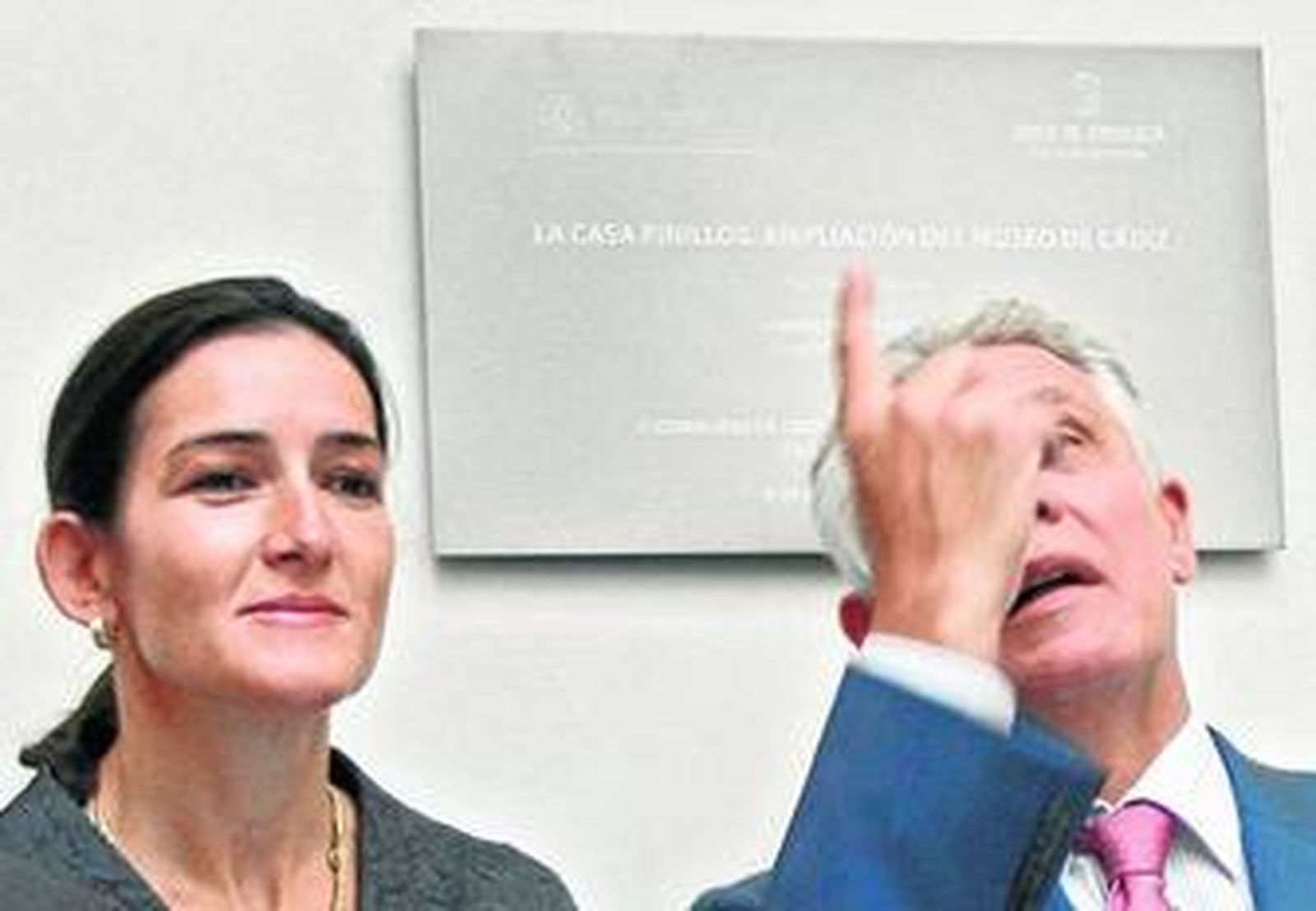 Ángeles González-Sinde ni siquiera tuvo que develar la plaquita -su tamaño se merece el diminutivo-, que recuerda en el patio principal del edificio el acto de inauguración, pues el presupuesto no debió de dar para la tradicional cortina -cortinita, en este caso-. La ministra pasó directamente a recorrer la exposición fotográfica de Ramón Muñoz, subiendo escaleras, recorriendo estrechos pasillos y deteniéndose en algunas de las imágenes que más le llamaron la atención, como las agrupadas en torno a la temática escolar. El director del Museo de Cádiz y comisario de la muestra, Juan Alonso de la Sierra; uno de los arquitectos de la rehabilitación, Francisco Reina, y el alcalde accidental, José Blas Fernández, fueron explicando algunos detalles de las fotografías y de la casa a una ministra que quedó encantada de la subida a la torre mirador del edificio, desde la que fotografió la Alameda y el mar con su teléfono móvil.