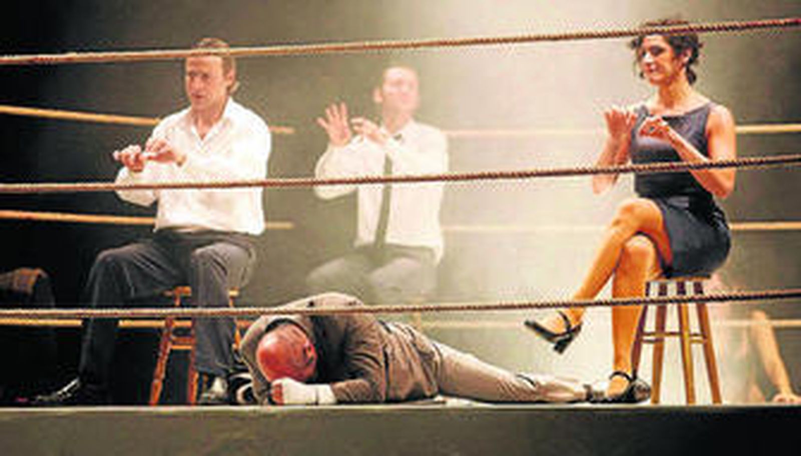 Autor: Juan Cavestany. Director: Andrés Lima. Ficha artística: Centro Dramático Nacional y Animalari. Reparto: Roberto Álamo, Raúl Arévalo, Luis Bermejo, Víctor Masán, Alberto San Juan, María Morales, Estefanía de los Santos, Luz Valdenebro. Escenografía y vestuario: Beatriz San Juan. Música original y diseño de sonido: Nick Powell. Iluminación: Valentín Álvarez y Pedro Yagüe. Caracterización: M-up Sánchez. Asesor de boxeo: Jero García. Día: sábado 30 de enero. Lugar: Teatro Municipal Pedro Muñoz Seca de El Puerto. Aforo: Completo.