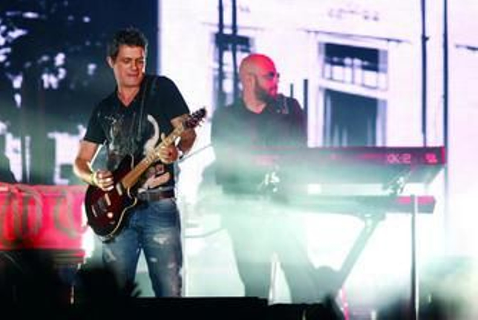 Continúa la emoción y los aplausos cuando entra en escena, con pantalla a media asta, el primero de los artistas invitados. Manuel Carrasco se marca a dúo con Sanz la bella Desde cuando. Bueno, esa es la intención pero los asistentes siguen la letra de principio a fin. Todo el estadio corea el tema.