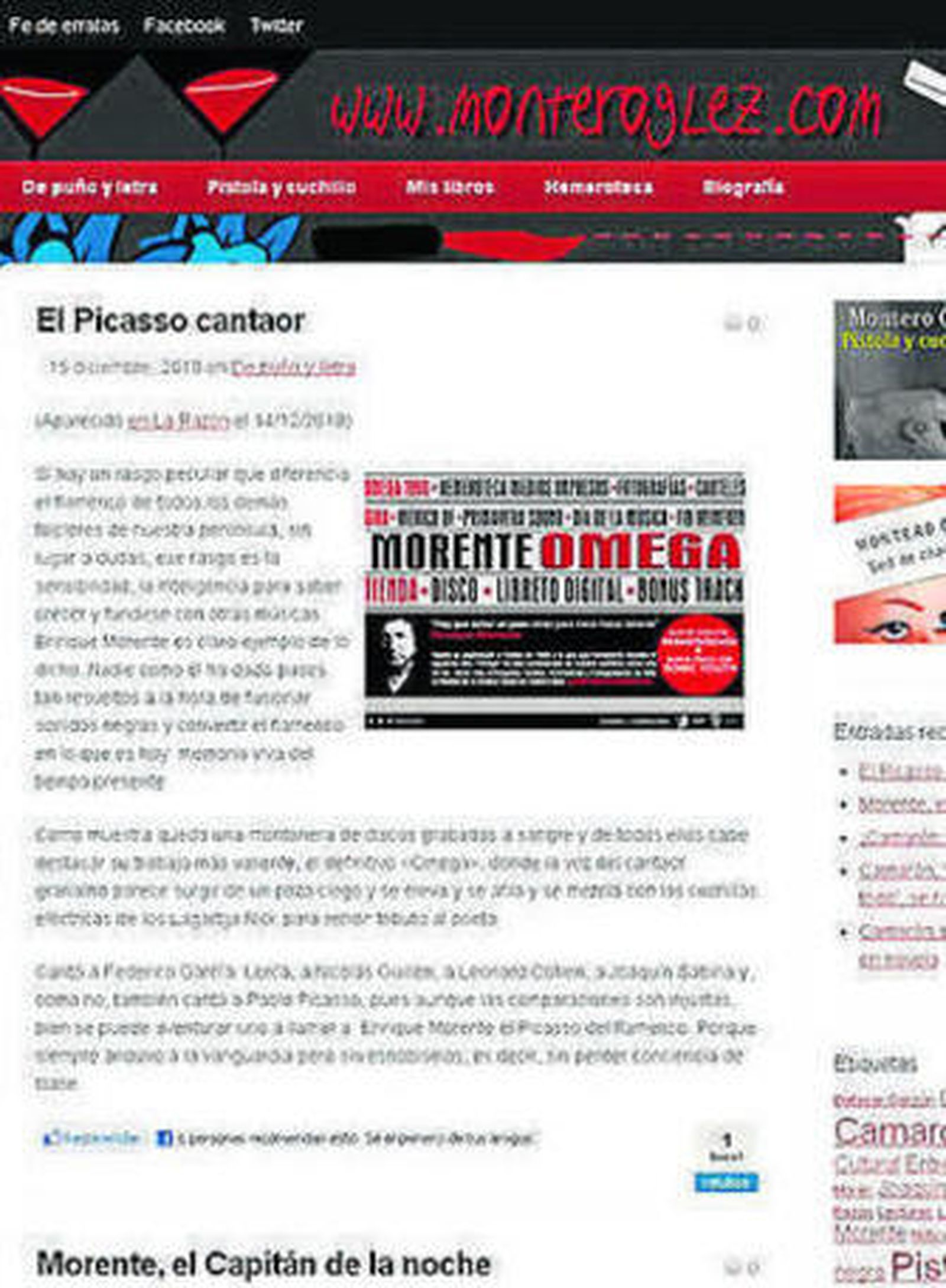Conservando el espíritu del original, el autor de Sed de champán se ha mudado recientemente a la plataforma Gente Digital y en la dirección http://gentedigital.es/comunidad/monteroglez/ vuelca sus pasiones y obsesiones, donde el flamenco juega un papel fundamental. Desgraciadamente, la prematura muerte Enrique Morente ha llevado al escritor a repasar el genio creador del granadino y a recordar, también, aquellas madrugadas por el Rastro de Madrid junto al payo al que los gitanos llamaban "maestro", dice en el post Morente, el Capitán de la noche. Además, el autor comparte las reseñas e impresiones acerca de la publicación de Pistola y cuchillo (El Aleph/ Mario Muchnik), su recreación de los últimos días de Camarón.
