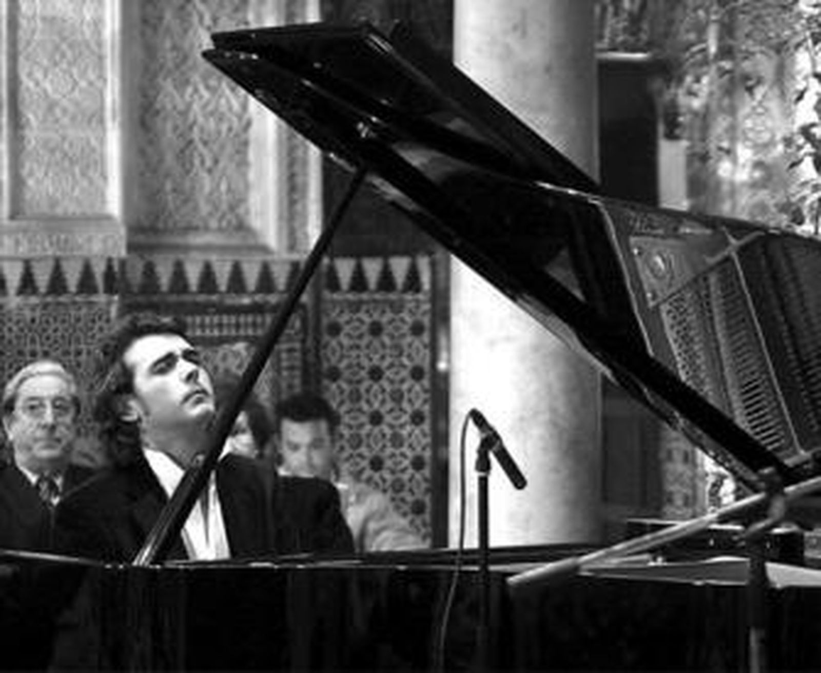 Anoche, en su recital en el patio neomudéjar de la plaza San Antonio, Pedro Ricardo sorprendió por tientos, granaínas y seguiriya en una primera parte en solitario. Tras el descanso, invitó a los cantaores Manuel Tañé e Ismael Fernández, así como al percusionista Juan Ruiz (habitual en los conciertos de El Barrio), a interpretar algunos temas señeros de su primer disco Piano con duende (El pescador de estrellas), como las alegrías que dedicara a Beni de Cádiz (Tío Beni) y los célebres tangos trianeros "que unas veces hablan de banderas republicanas y otras de banderitas gitanas, según me coja el día", bromea.