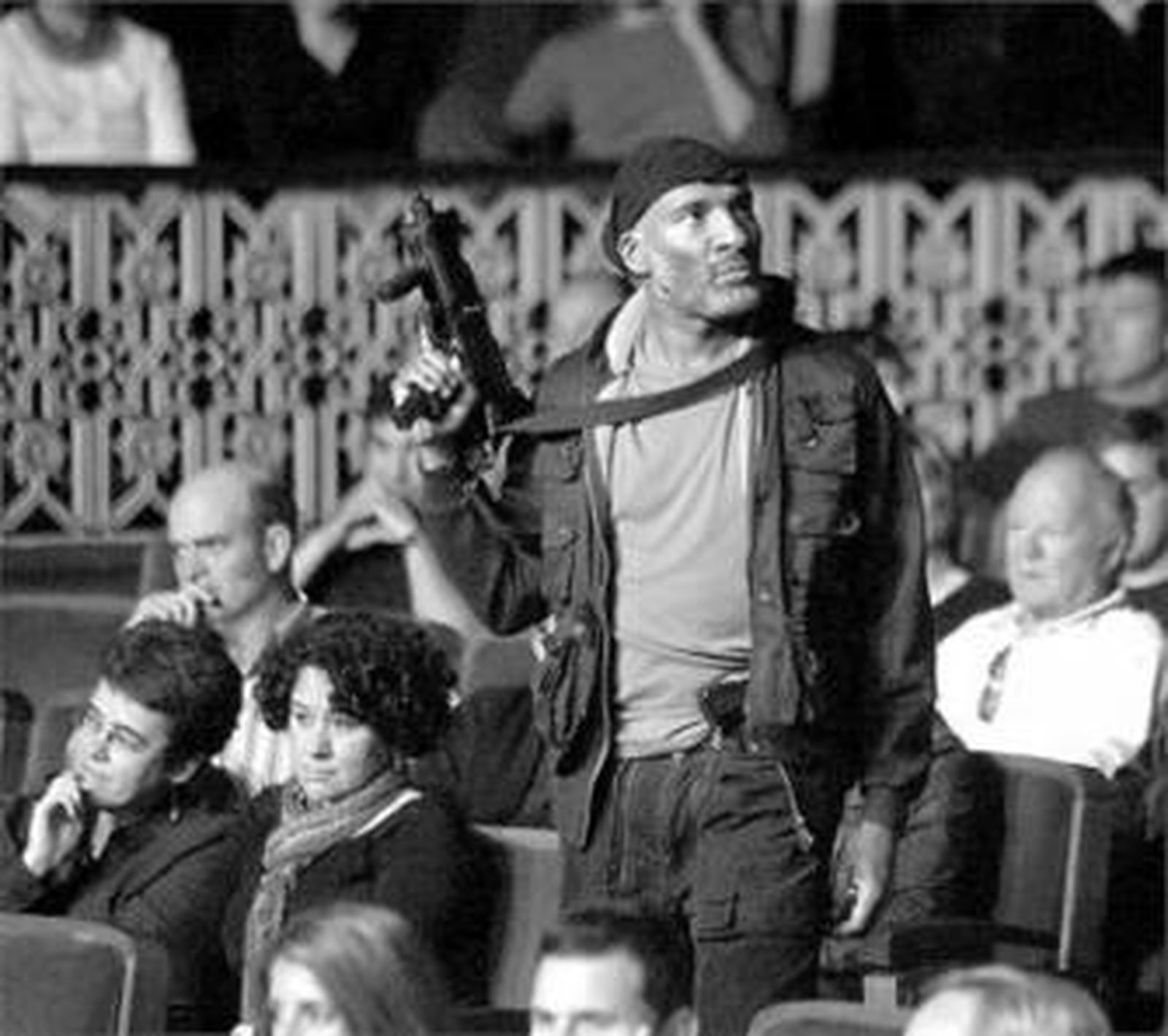 Empieza como una representación del Boris Godunov de Pushkin y a los diez minutos irrumpen los terroristas tomando el teatro. Así los espectadores nos sentimos rehenes como aquellos infortunados moscovitas de 2002. Luego, asistimos a la crisis que termina en el contraataque gubernamental. Y aquí enlazamos con lo que decíamos al principio: para poder mostrar todos los aspectos del asunto, hay que recurrir a la imagen audiovisual. En escena, entre el público, con cámaras que filman los pasillos y los bastidores de un Falla convertido en campo de batalla, enfocando a algunos rehenes en las butacas. Hasta se nos ofrece una filmación de un gabinete de crisis donde se toman las decisiones. Uno se pregunta si no hubiese sido mejor hacer una película directamente.