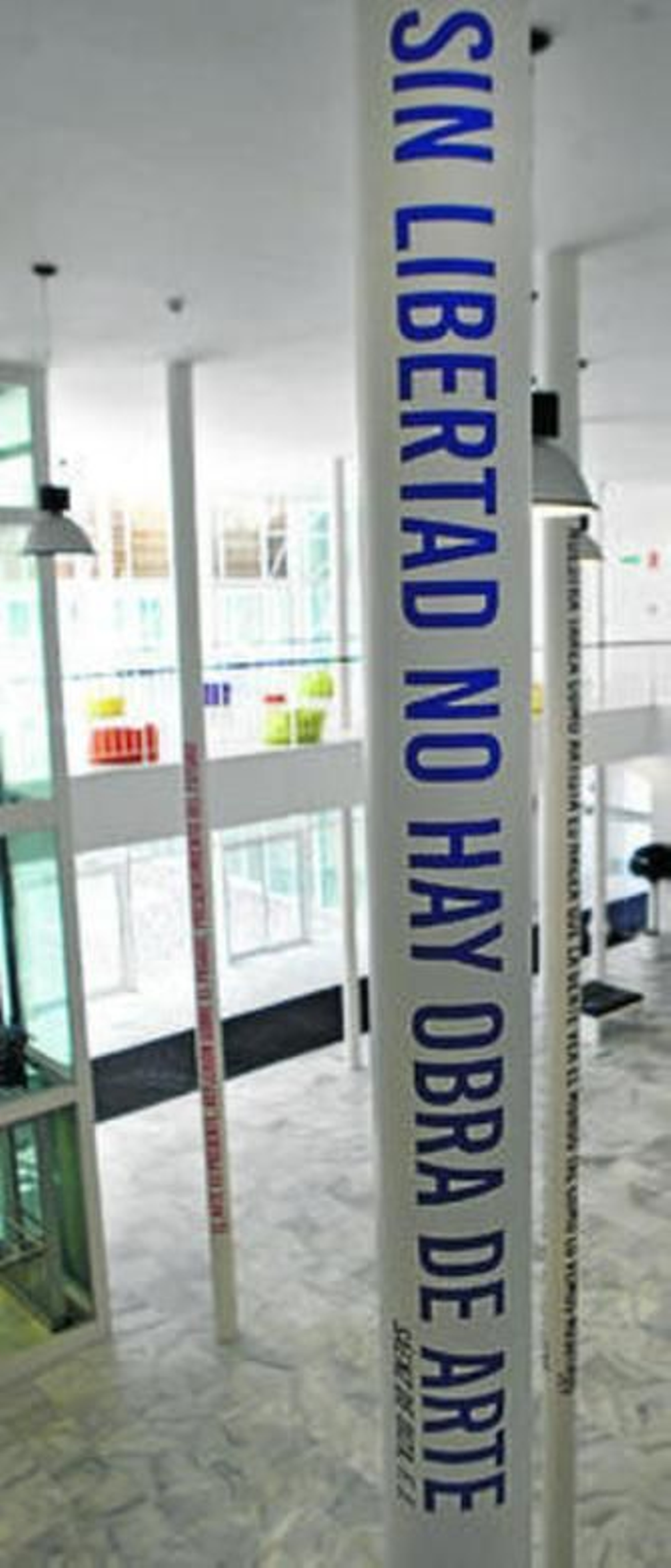 El vestíbulo de lo que fue antigua instalación cuartelaria se llena con veintitantas columnas que ocupan de arriba abajo y de abajo arriba el espacio con su particularísimo mensaje destinado a la reflexión. En cada una de estas columnas aparece la frase de un artista, de un pensador, de un filósofo en torno al arte y a la creación.