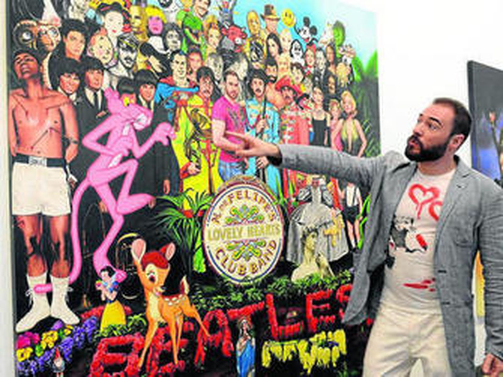 Envoltorios para la historia como el Sgt. Pepper's Lonely Hearts Club Band, de The Beatles, que Antonio De Felipe toma para convertirlo en el buque de insignia de la serie LPop. "En esta obra está todo mi universo. Está todo lo que tiene que ver conmigo", resume sobre la obra en la que él mismo se incluye sustituyendo a Ringo Starr. Sus padres artísticos, Warhol y Velázquez, su padre "que murió antes de poder ver una exposición mía", lamentaba, Ali en la imagen del San Sebastián, la Pantera Rosa, Almodóvar (con el que trabajó en Carne trémula), Mortadelo, El principito... "Cuando ya tenía el cuadro terminado y a todos los personajes pintados coloqué a Wally", contó como curiosidad.