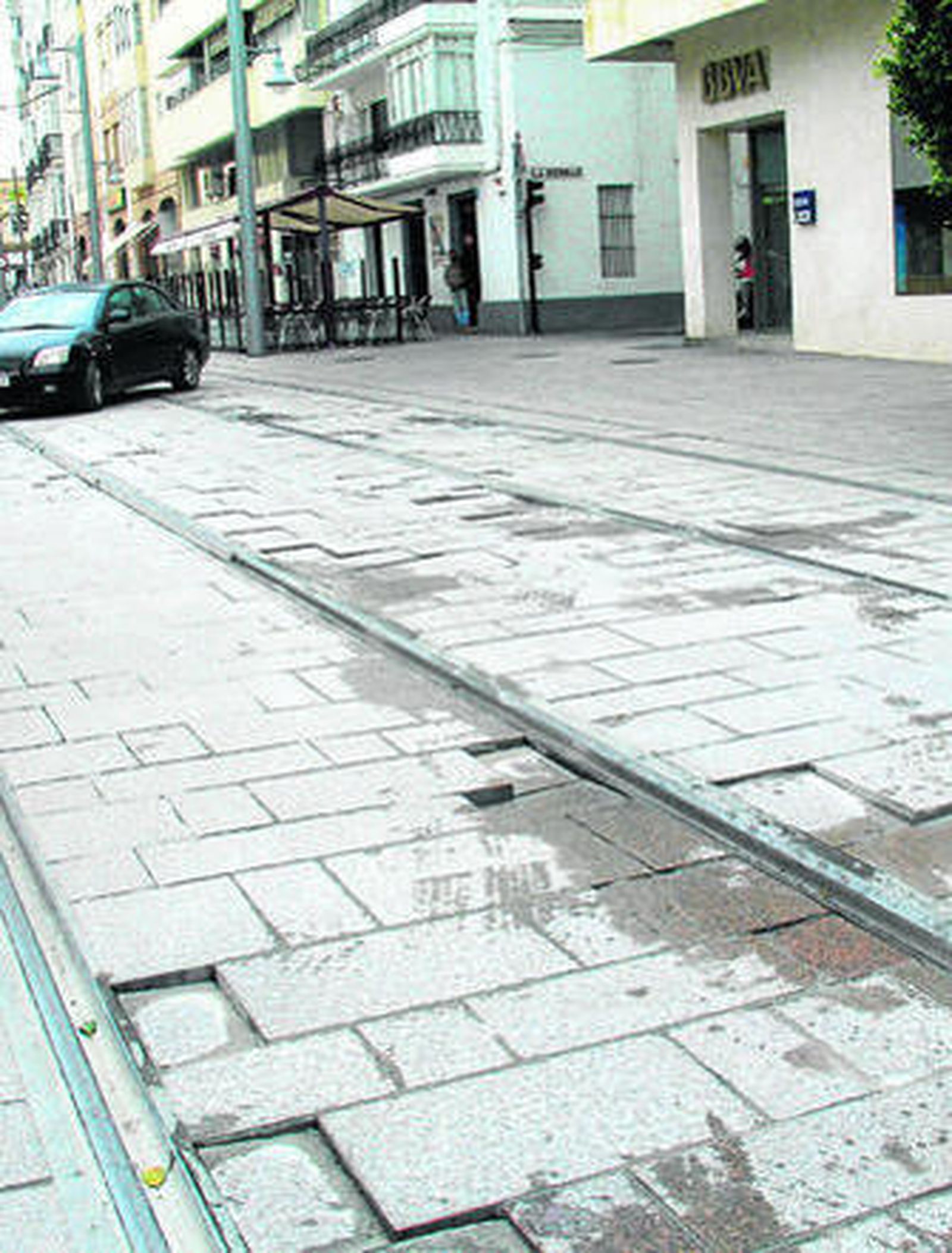 Otro ejemplo de problemas de levantamiento y hundimiento de las losas en Real, concretamente en el tramo entre La Herrán y Almirante Cervera, sirvió al delegado de Presidencia para cuestionar que se señale al mal uso de la calle como razón de su deterioro. En ese trazado las losas están en mal estado, pero es una unión de calles que no están a la misma altura y que el proyecto contempla como paso habitual de vehículos, "ahora y cuando esté el tranvía que se regulará por semáforo". "¿También han contado el paso de vehículos, por que ahí no hay ningún tipo de restricción?", volvió a insistir para refrendar sus afirmaciones de la que la calle "está mal hecha".
