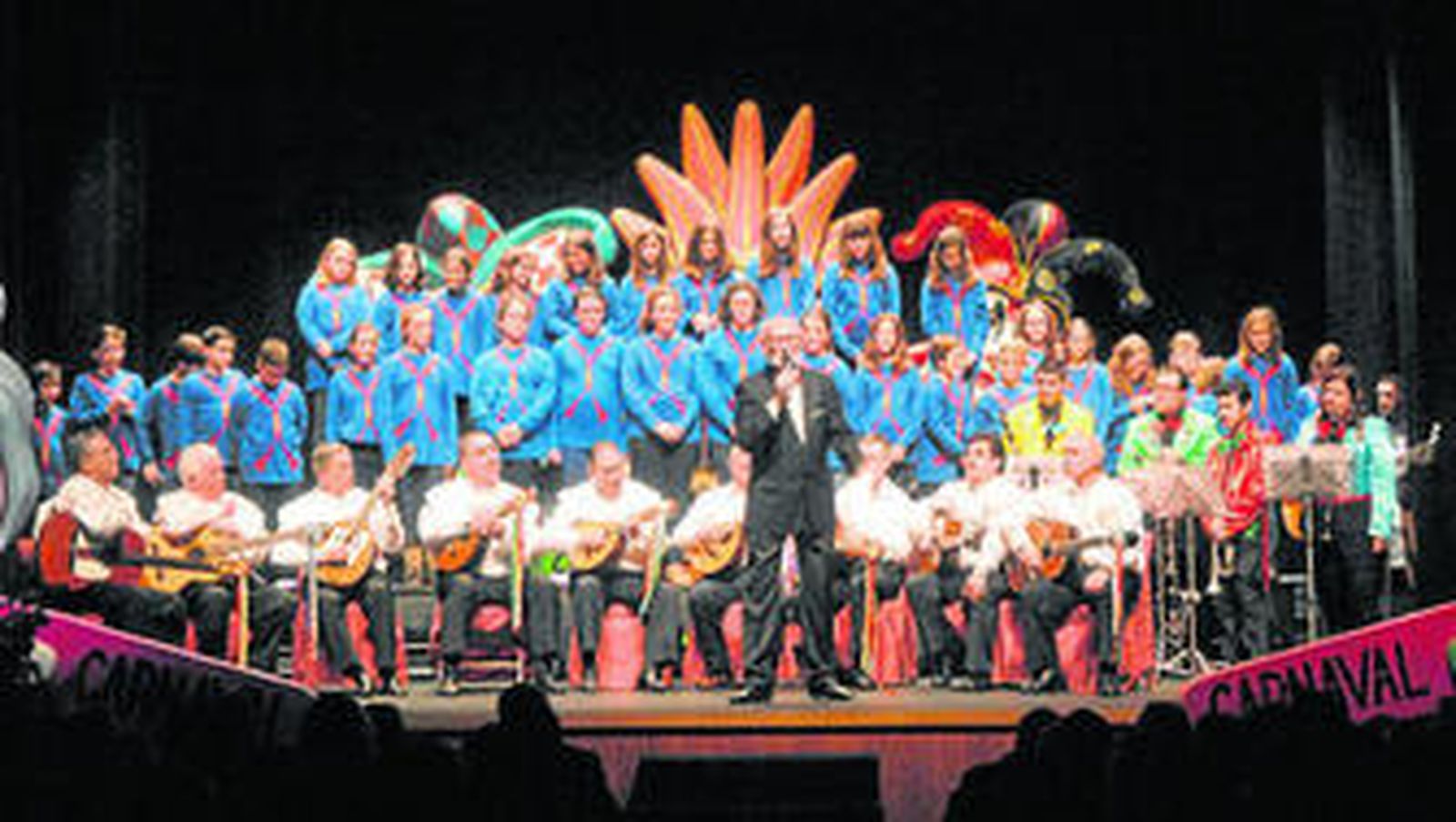 Muchos se quedaron con las ganas de poder entrar porque el Teatro de las Cortes se quedó anoche más pequeño que nunca para hacer historia del mejor Carnaval de la Isla de la mano de Francisco Melero, toda una autoridad en la materia, y de la Orquesta Caballati, los próximos pregoneros de la fiesta. Aunque ambos, en realidad, tuvieron bastante ayuda para afrontar este encargo que les hizo la Real Academia de San Romualdo para conmemorar el 250 aniversario de la villa y de la constitución del Ayuntamiento que se celebra en 2016: narrar la Historia (contada, cantada e interpretada) del Carnaval de La Isla. Por el escenario pasaron para poner su granito de arena en la faena Juani Sánchez y la antología Sal de Coplas, la rondalla Evocación isleña, las voces del Minicoro, la chirigota del club La Salina y el coro formado por los niños del conservatorio elemental de música Chelista Ruiz Casaux, ingeniosamente bautizado -dada la ubicación provisional del centro desde hace más de un cuarto de siglo en el colegio Almirante Laulhé- como 'Los niños adoptivos del Almirante'.