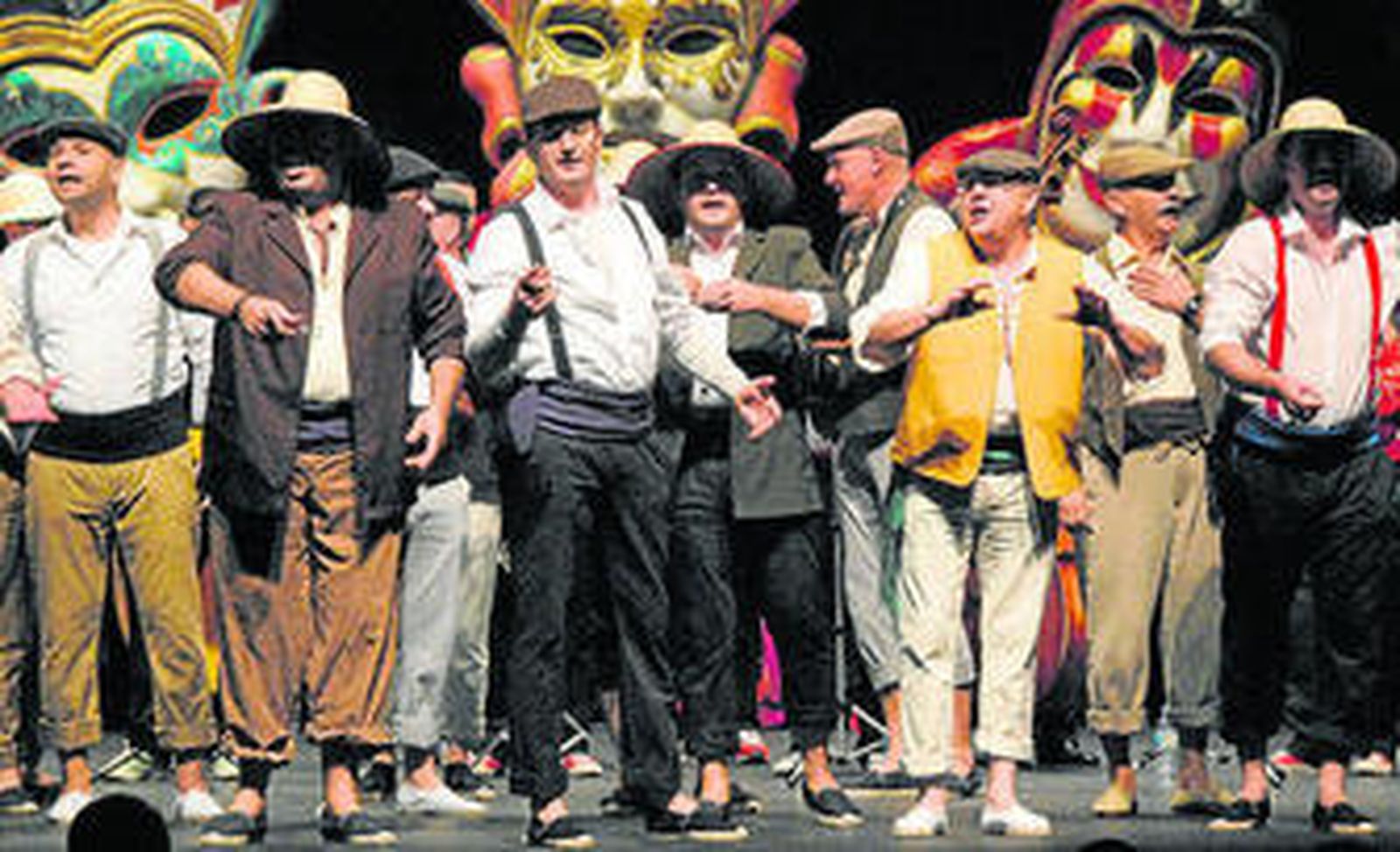 Coplas añejas de 'Camarones de la Isla', que fue la encargada de abrir el acto, de 'Los faquires de Oriente', 'Los Zipi Zape', 'El profesor Majareta y los niños probeta', 'Colorín Colorao', 'Los tontos no se separan' o 'Los caballeros de la noche', entre otras, resonaron en el principal escenario isleño para recordar la edad de oro de un Carnaval entonces vibrante y entusiasta que inevitablemente dio forma a una de las facetas más populares de La Isla. El repertorio -lo primero que hizo Melero fue pedir disculpas por la obligada selección de tangos, pasadobles y cuplés que tiene cabida en hora y media de espectáculo- fue necesariamente de lo más selecto, de Carnaval con solera. Era, de hecho, uno de los propósitos del montaje: transmitir la esencia de ese buen Carnaval de La Isla y, al mismo tiempo, echar la vista atrás para recordar la historia de la fiesta a lo largo de los dos siglos y medio de vida del municipio. Por eso no podían faltar tampoco en esta cita histórica sus grandes nombres propios: José María Ramos Borrero 'Pepe Requeté', Juan Rivero Torrejón, Paco Mora... Ni tampoco los estribillos más conocidos del Carnaval de Cádiz, que nacieron en La Isla, como se recordó ayer una vez más. La chirigota del club La Salina fue la encargada de cantarlo: el 'Qué bonito' de 'El profesor majareta' (1979) y el 'Ole viva mi Cai' de 'Los Zipi Zape' (1971). Eso sí, esta última se cantó en su versión original y no la que autorizó en su momento la censura, que obligaba a sustituir 'berenjena' por 'hierbabuena' para evitar suspicacias y dobles sentidos con la letra.