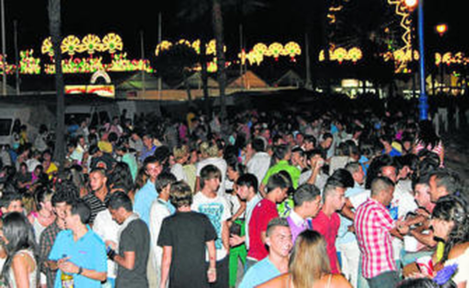 La música de las casetas pasaba a un plano secundario, solapadas por los murmullos de la concentración juvenil. En el paseo, el tránsito de personas durante toda la noche finaliza con los primeros rayos del sol.