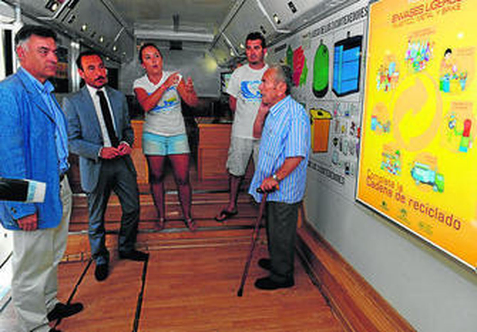 En la mañana de ayer el delegado del Gobierno andaluz en la provincia, Fernando López Gil, y el de Agricultura, Pesca y Medio Ambiente de la Junta de Andalucía, Federico Fernández, visitaron el bus del reciclaje, que hizo escala en la plaza del Rey de la ciudad en su trayecto estival por los 16 municipios del litoral gaditano.