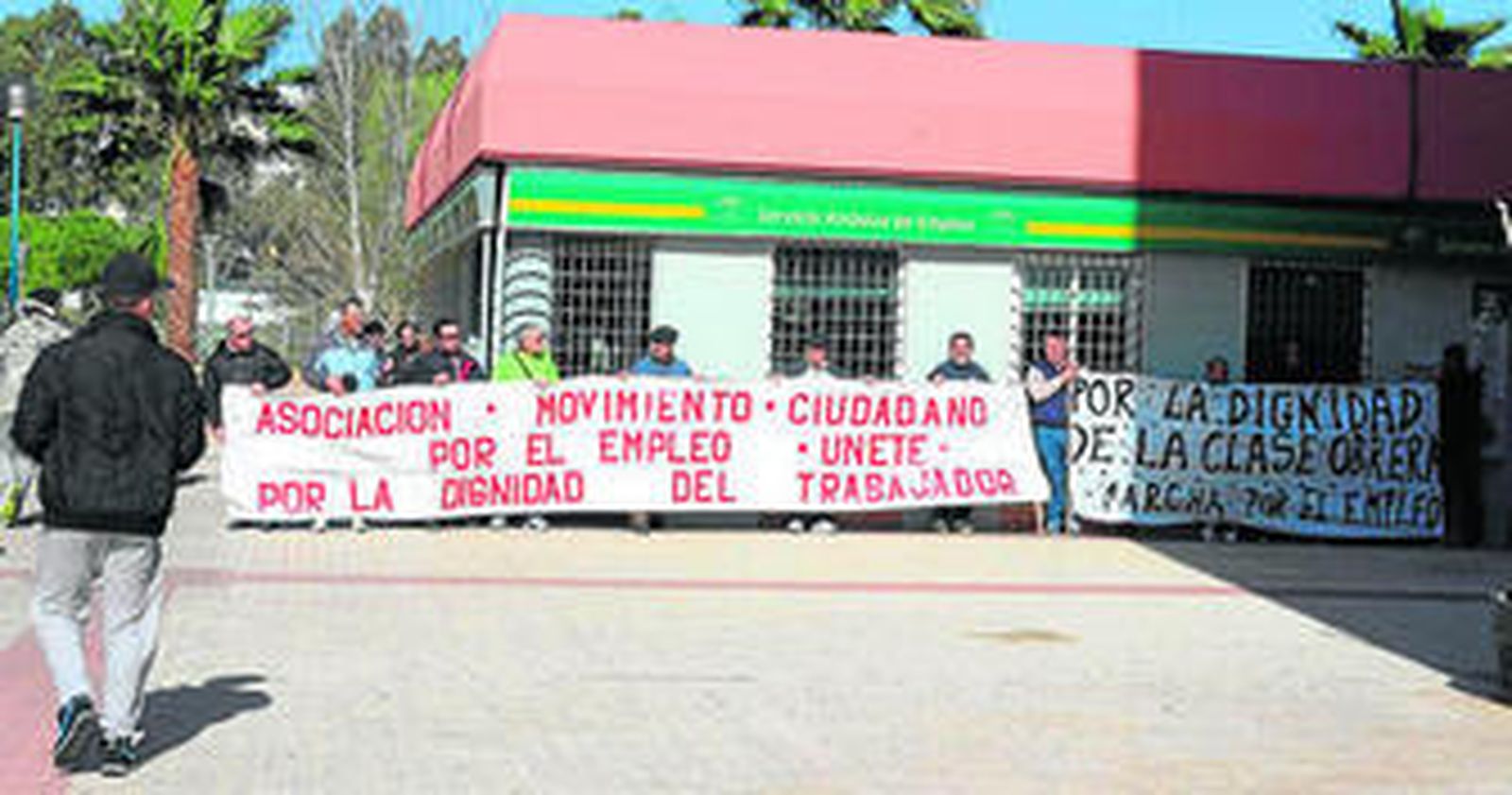 El colectivo de desempleados de larga duración Movimiento Ciudadano por el Empleo se concentró ayer a las puertas de las oficinas locales del Servicio Andaluz de Empleo (SAE) para protestar por su precaria situación y demandar soluciones.