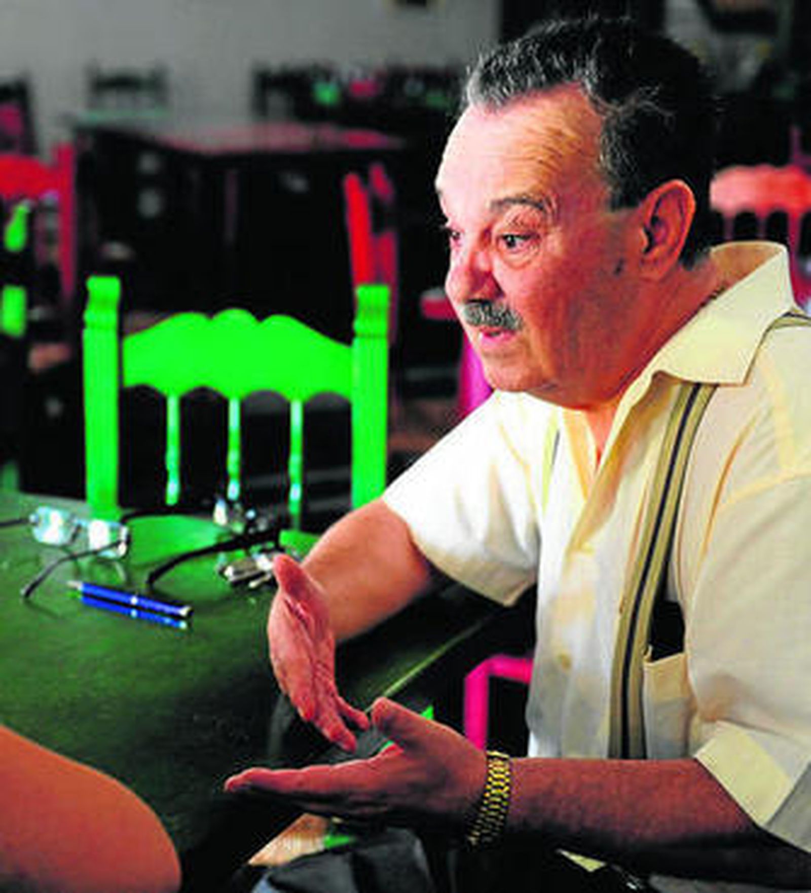 Tan sólo entrar por la puerta cientos de ojos penetrantes se clavan en la mirada del visitante. Unos ojos profundos, sinceros y con cierto aire de melancolía. Son los acais de José Monge Cruz, inmortalizados en los innumerables retratos que decoran las paredes de la peña Camarón, una entidad que nació en el año 89 pero que tuvo que esperar hasta el 95 para ser inaugurada de manera oficial. Sin lugar a dudas, un templo del flamenco con solera, de cuya trayectoria nos da cuenta el responsable de la junta directiva, Antonio León Íñigo, inconfundible personaje isleño. Con las manos ajustándose los tirantes -casi otra seña de identidad de la peña- toma asiento en una de las sillas de mimbre y, apoyando los codos en la mesa de madera, mira al escenario, a las paredes, a los balcones... En todas partes José está presente, está vivo.