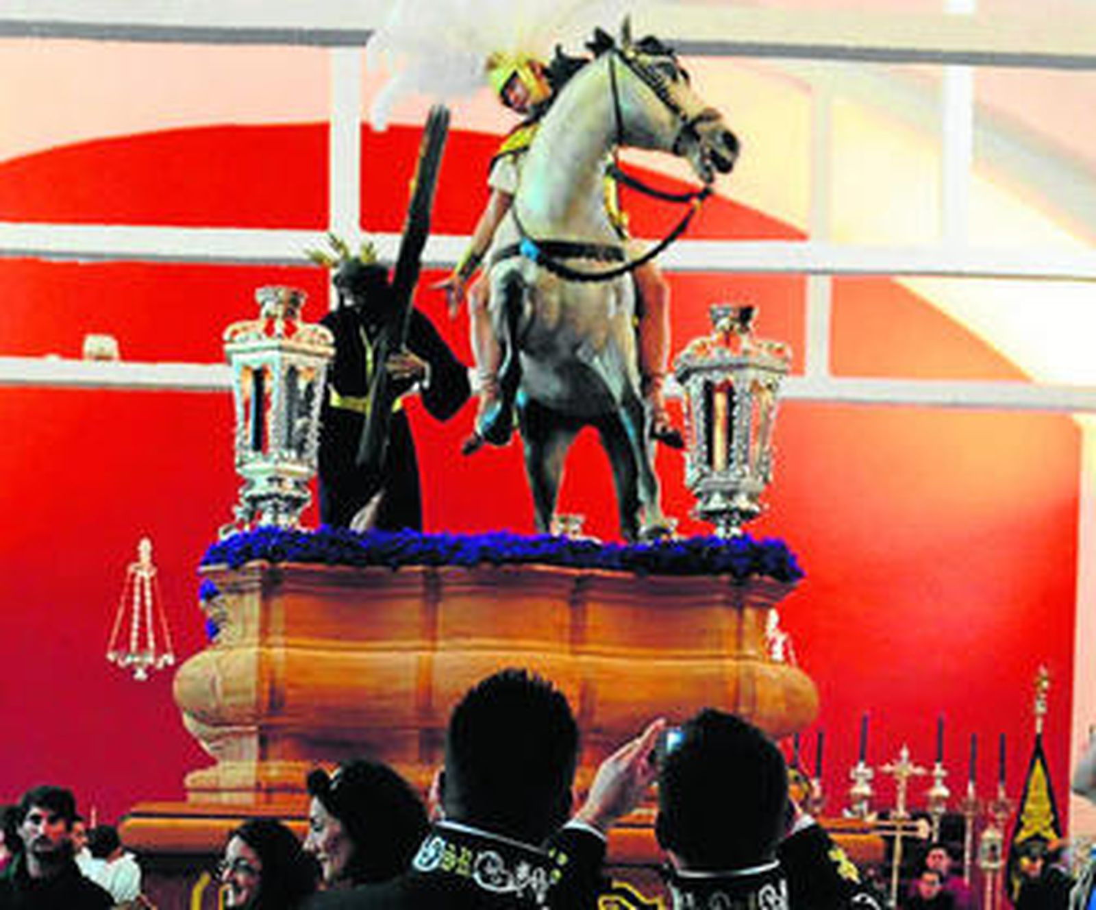 El conjunto escultórico del misterio de la joven hermandad del Santísimo Cristo de las Tres Caídas contará seis imágenes secundarias que se sumarán a la del romano a caballo que acompaña al titular de la cofradía, un estreno que la lluvia truncó el pasado Jueves Santo. El centurión a caballo -de gran espectacularidad y movimiento- no llegó a verse en la calle. Solo en el interior de la iglesia de la Sagrada Familia.