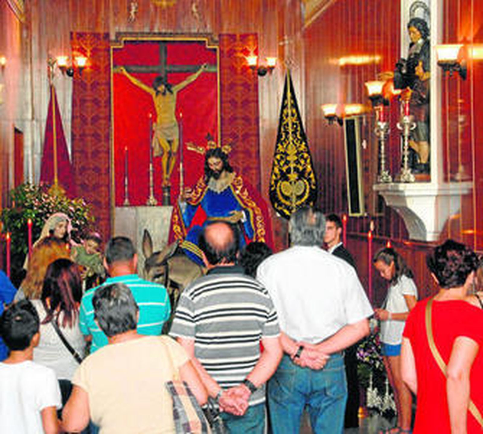 Hubo templos que vivieron ocasiones históricas, como en la parroquia de la Divina Pastora, donde sus cuatro hermandades compartieron el reducido espacio de la iglesia en tres besapiés y un besamano, el de la imagen de gloria. O en la Iglesia Mayor, donde Nazareno, Columna, Servitas, Soledad y el Patrón San José llenaron las naves laterales con sus altares de cultos.
