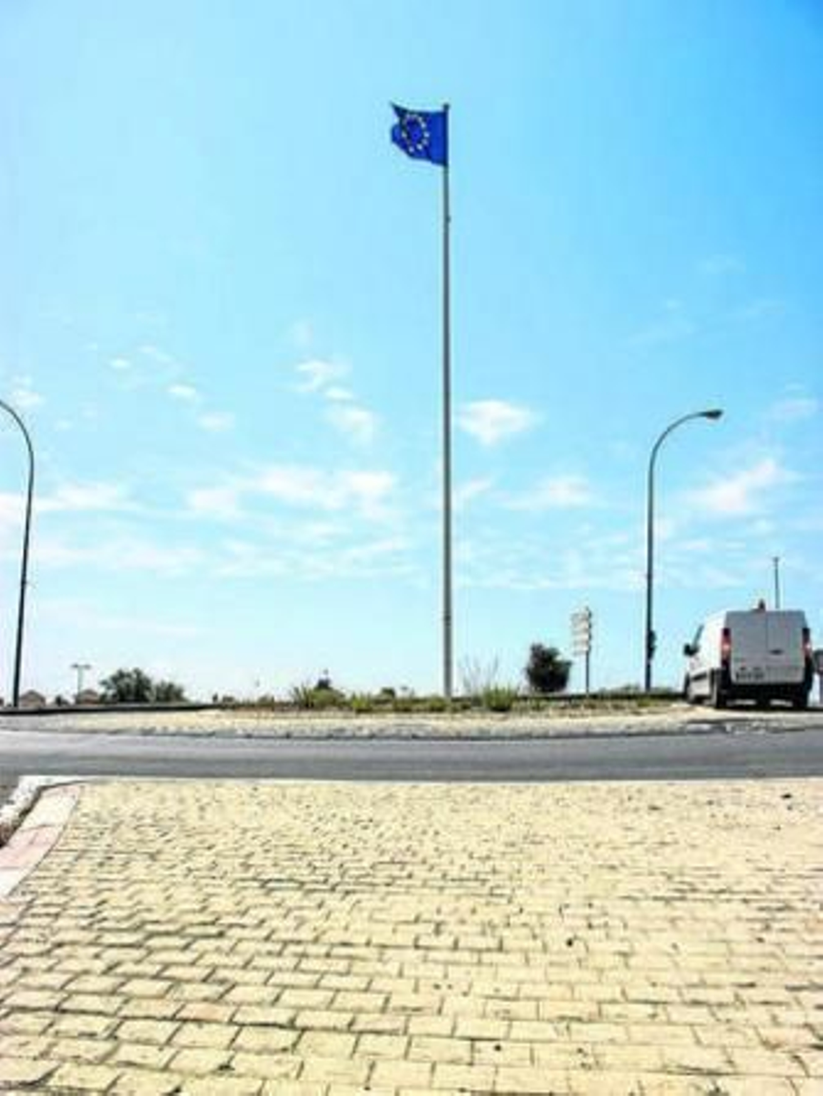 Efectivamente, esta sencilla glorieta fue construida por la Gerencia Municipal de Urbanismo en 2005 aprovechando una intervención que se llevó a cabo en el puente del Gran Poder para agilizar el tráfico rodado y facilitar el acceso desde la CA-33. En línea con la vocación europeísta que desde el Ayuntamiento, por aquellas fechas, se intentaba impulsar -uno de sus exponentes más representativos fue la apertura del Europe Direct, el punto de información europea- se decidió dedicar expresamente esta rotonda a la UE. Hubo incluso una ceremoniosa puesta de largo que incluyó el izado de la bandera azul de la comunidad, que durante siete años ondeó en este acceso sin problemas de ningún tipo.