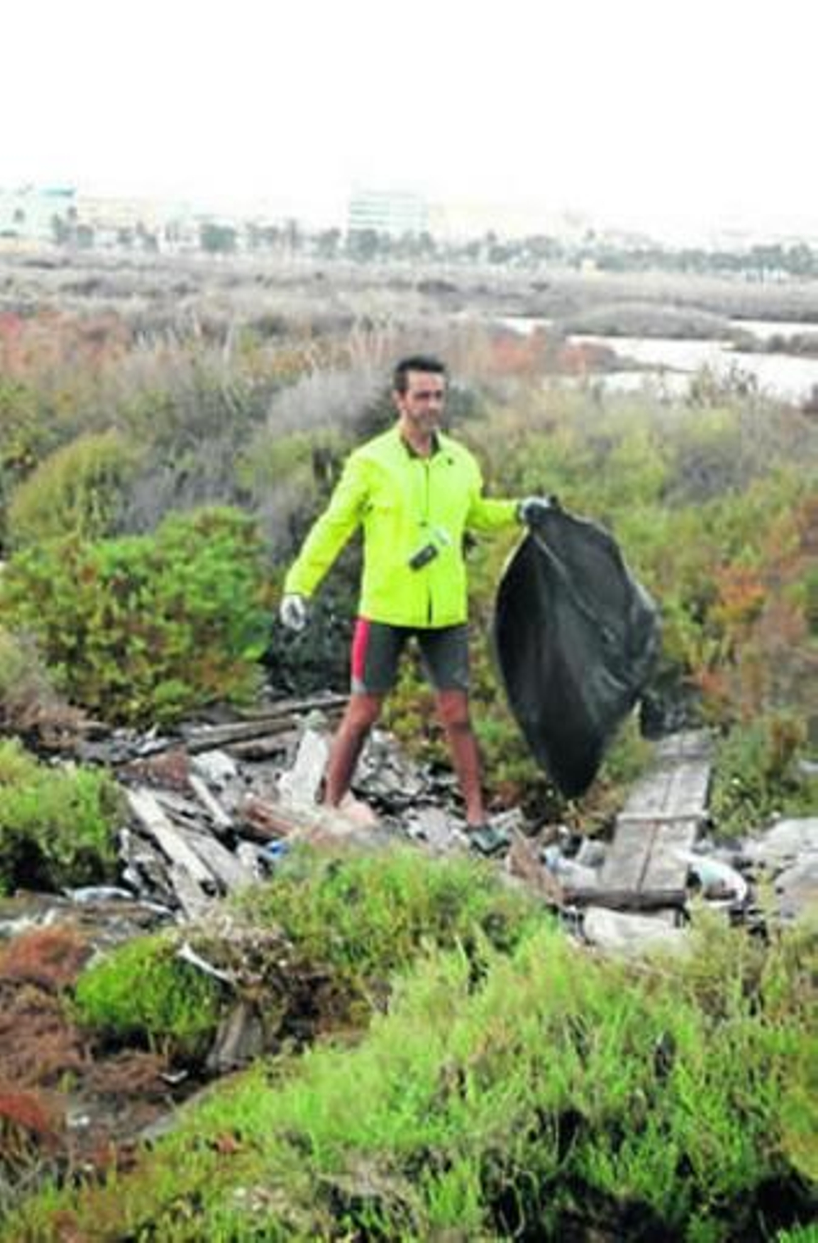 Ésa es la buena cara de este espacio natural, que tiene una cara amarga: la que muestra en la parte urbana, como puede ser la zona de La Magdalena. "Muchas veces tiran ahí los restos del botellón", las botellas de cristales, vasos o plásticos. "Es una pena que no haya nadie de limpieza que trabaje allí de manera más constante", reconoce. A eso se suma las consecuencias del mercadillo de los jueves, como ya denunció en su momento el colectivo ecologista Los Jartibles de la Bahía que hablaba de las bolsas de plástico, los cartones, las botellas o los restos de envoltorios de comida que quedaban en la zona y terminaban en el caño. Entonces pedían que alguien limpiara mientras durara la actividad comercial. Barba propone además que se coloque una valla cerca del borde litoral para que queden en ella enganchados los restos que el viento arrastra hacia las aguas. Y por supuesto ayudará ser consciente del daño que se hace al tirar cualquier tipo de basura, para no hacerlo más.