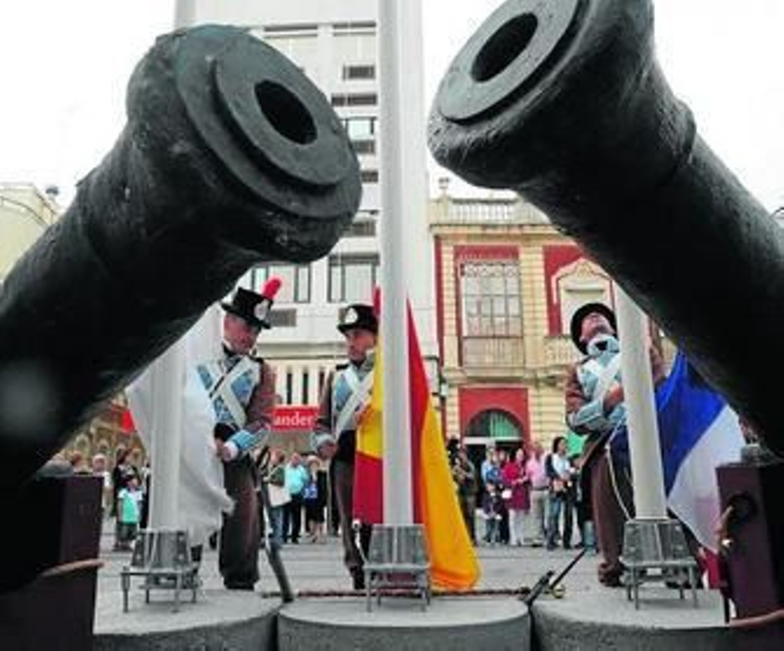 Tras sus palabras, los voluntarios de la Guardia Salinera portaron el estandarte de los navíos que pasaron a la flota de España rebautizados: Algeciras, Neptuno o Héroe, además de la fragata Cordelia. Ya habían lanzado salvas en homenaje a los soldados españoles y franceses caídos en el combate.