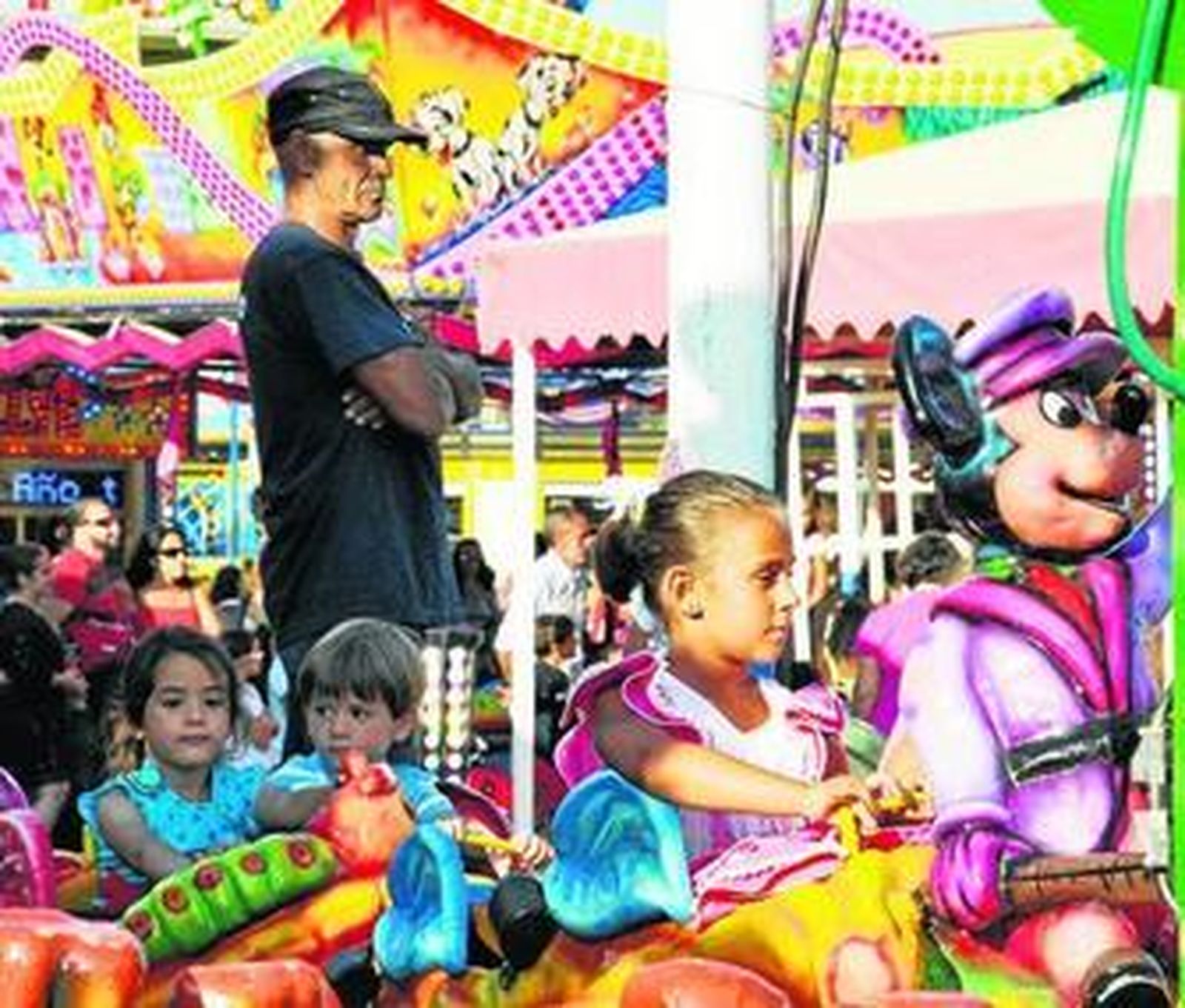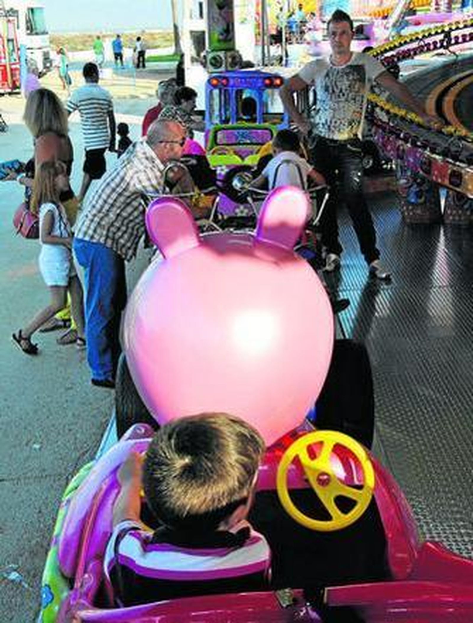 Familias al completo, con abuelos, padres, tíos, nietos, hijos, sobrinos, se arremolinaban junto a los aparatos para decidir en qué montarse. Otros lo habían decidido pronto y el tren de Los niños parecía más bien el tren de los mayores, con más adultos esperando que empezara que niños subidos a la atracción.