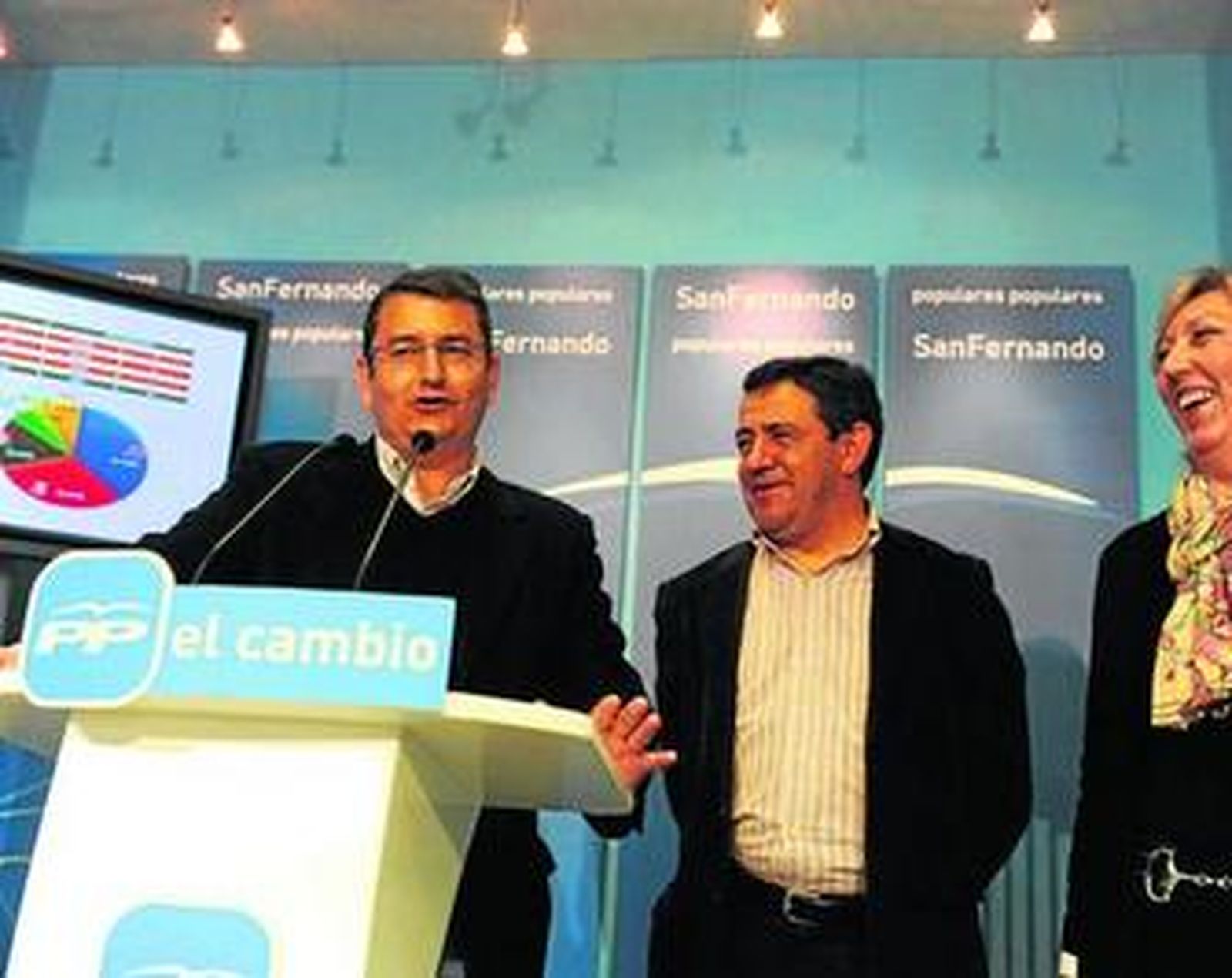 Son datos que se desprenden de la última encuesta encargada por el Partido Popular, un sondeo de opinión realizado por la empresa Gespa -Gabinete de Estudios Sociales y Políticos de Andalucía- que se desarrolló entre los días 21 y 24 del pasado mes de febrero a través de una entrevista telefónica practicada a una muestra de 600 isleños. Ayer, el secretario general del PP andaluz, Antonio Sanz, arropado por el candidato isleño y presidente provincial, José Loaiza, y la presidenta local, Carmen Pedemonte, dieron a conocer los datos de este estudio que -afirmaron- les sitúa directamente en la Alcaldía como fuerza más votada y como única opción política de cambio.