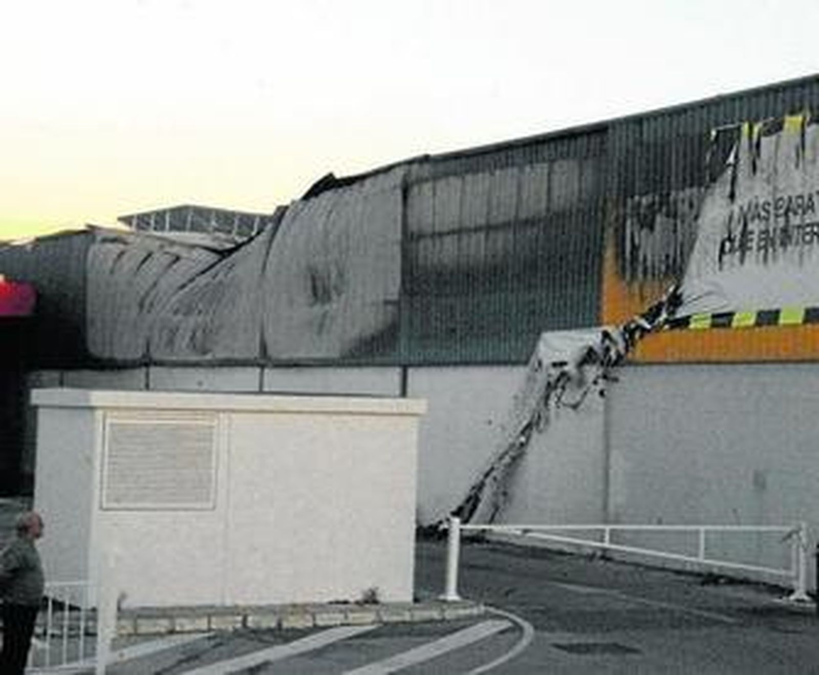 Las consecuencias del fuego que se produjo el domingo por la noche en la nave de electrodomésticos Miró, en el polígono de Fadricas, frente a Bahía Sur, pocos minutos después del cierre son perceptibles desde el exterior. A las espectaculares imágenes del momento en que se produjo el suceso y la posterior intervención de los bomberos de los parques de San Fernando, Chiclana y Cádiz sucedía ayer una escena menos llamativa, porque la estructura a pesar de estar afectada no ha quedado completamente destruida. De hecho, los letreros del frente y de un lateral de la nave con el nombre del establecimiento se mantienen en el sitio. Lo que se observa más deteriorado es la parte central de la nave, con la cubierta deformada, quemada y derretida. Por precaución la calle lateral ha quedado vallada para evitar el paso de vehículos. Eso no impidió, sin embargo, que algunas personas curiosearan en los alrededores al pasar con sus coches por la zona. Desde el exterior no parece, por suerte, que hayan sido afectadas las dos estructuras aledañas, del supermercado Día y de Frutas Cebada.