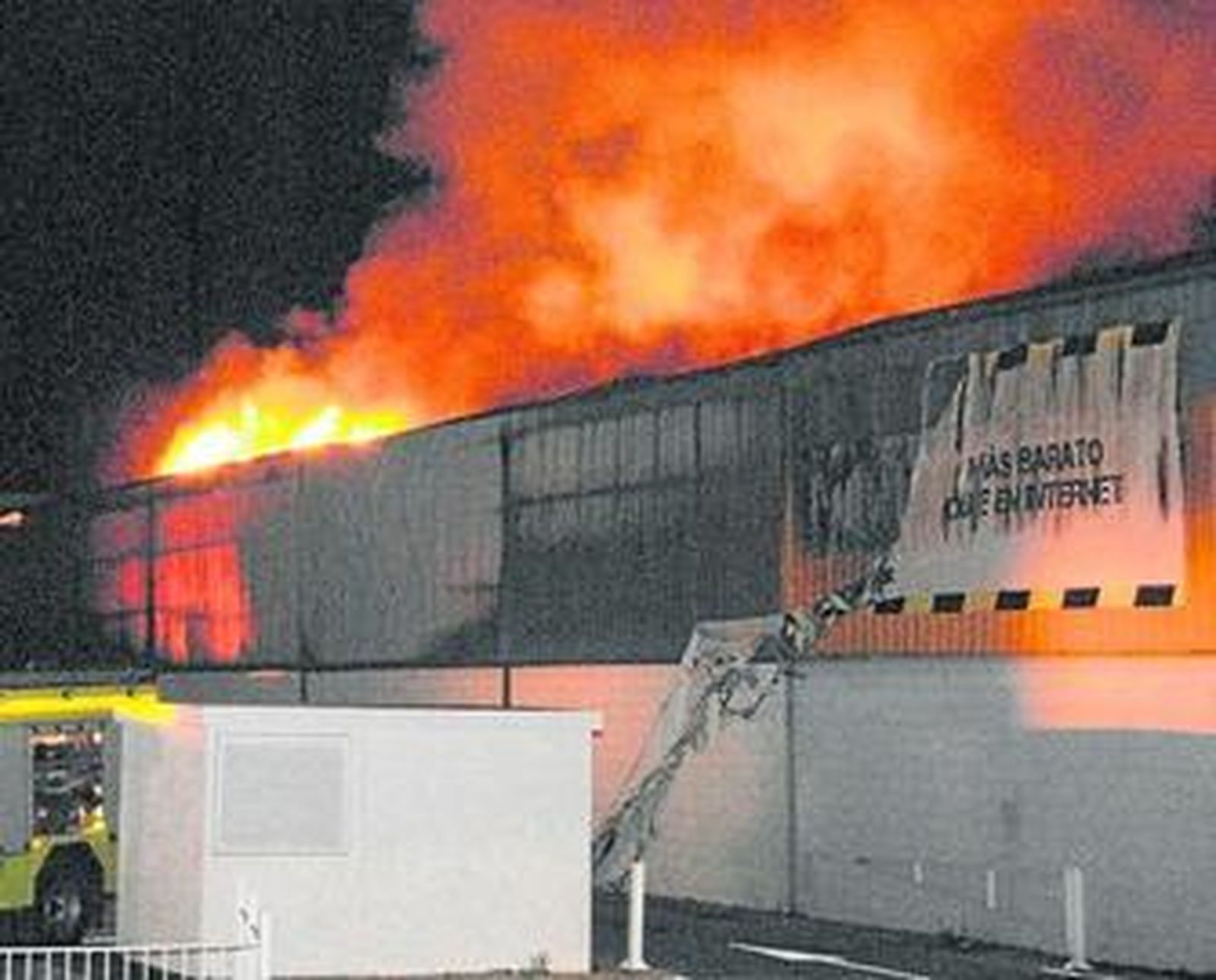 Una llamada a la sala de emergencia del 085 alertó a las 22.07 horas del incendio en la nave de electrodomésticos Miró en Fadricas. Ya en el lugar los bomberos comprobaron la situación: el fuego afectaba completamente a la construcción, de unos 5.000 metros cuadrados. Una gran bola de fuego había colapsado la estructura en el interior. La presión de los pilares de acero había provocado la torsión de las vigas y ésta el hundimiento hacia dentro de parte del techo, que tiene dos cubiertas -una de chapa galvanizada-. Los muros presentaban grietas y había una gran cantidad de humo.
