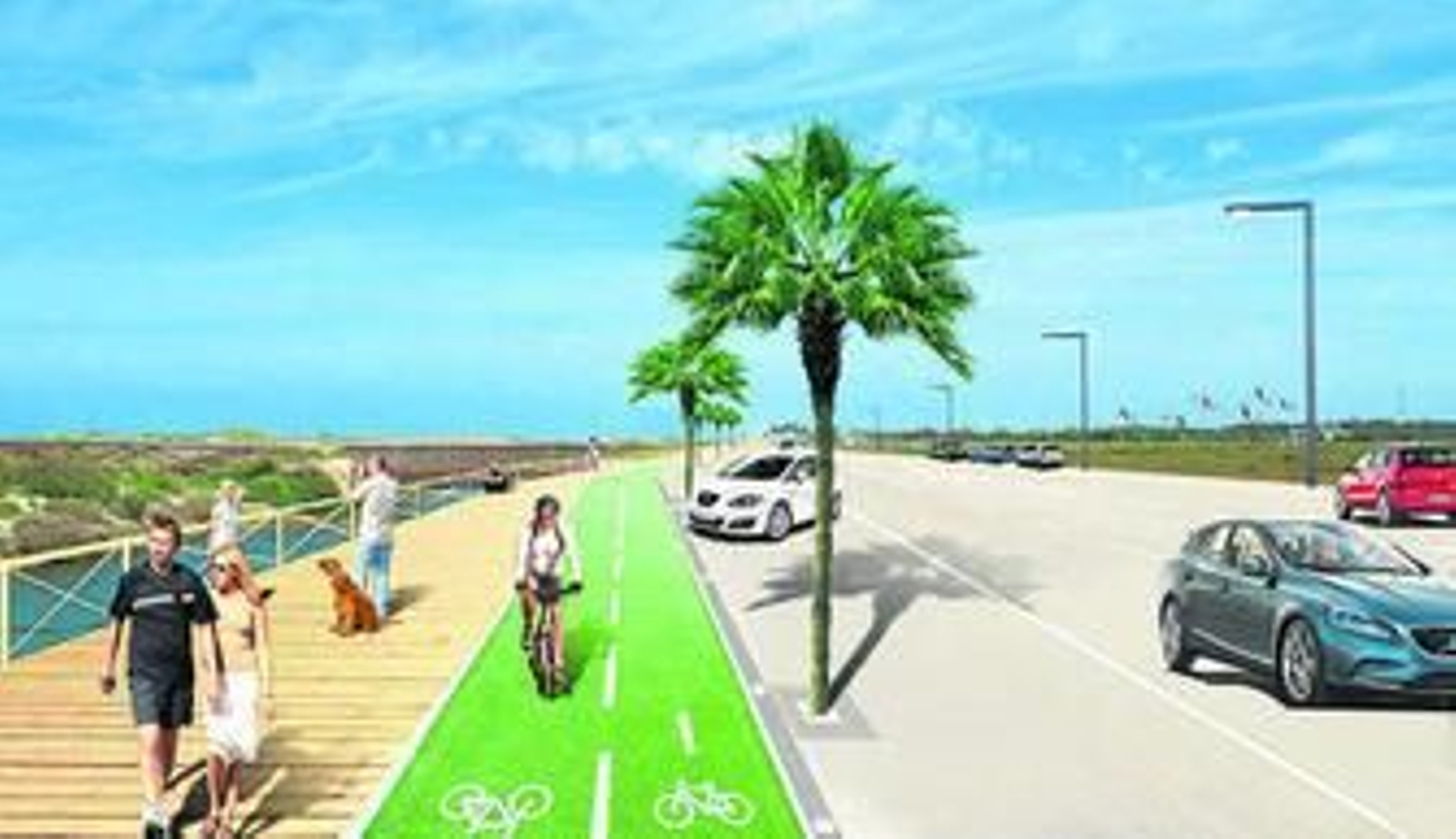 Este mayor espacio -explica la candidata- serviría también solventar los dos grandes problemas que padece la playa isleña: los accesos y los aparcamientos. "La disposición de esta nueva plataforma sobre el caño permitirá no solo habilitar un carril bici en una zona tan transitada por este tipo de vehículos", añade. Además abriría la puerta a la reordenación de los aparcamientos y a la inclusión de un tercer carril reversible en la calzada que se utilizaría en un sentido u otro -entrada o salida de la playa- en función de la hora.